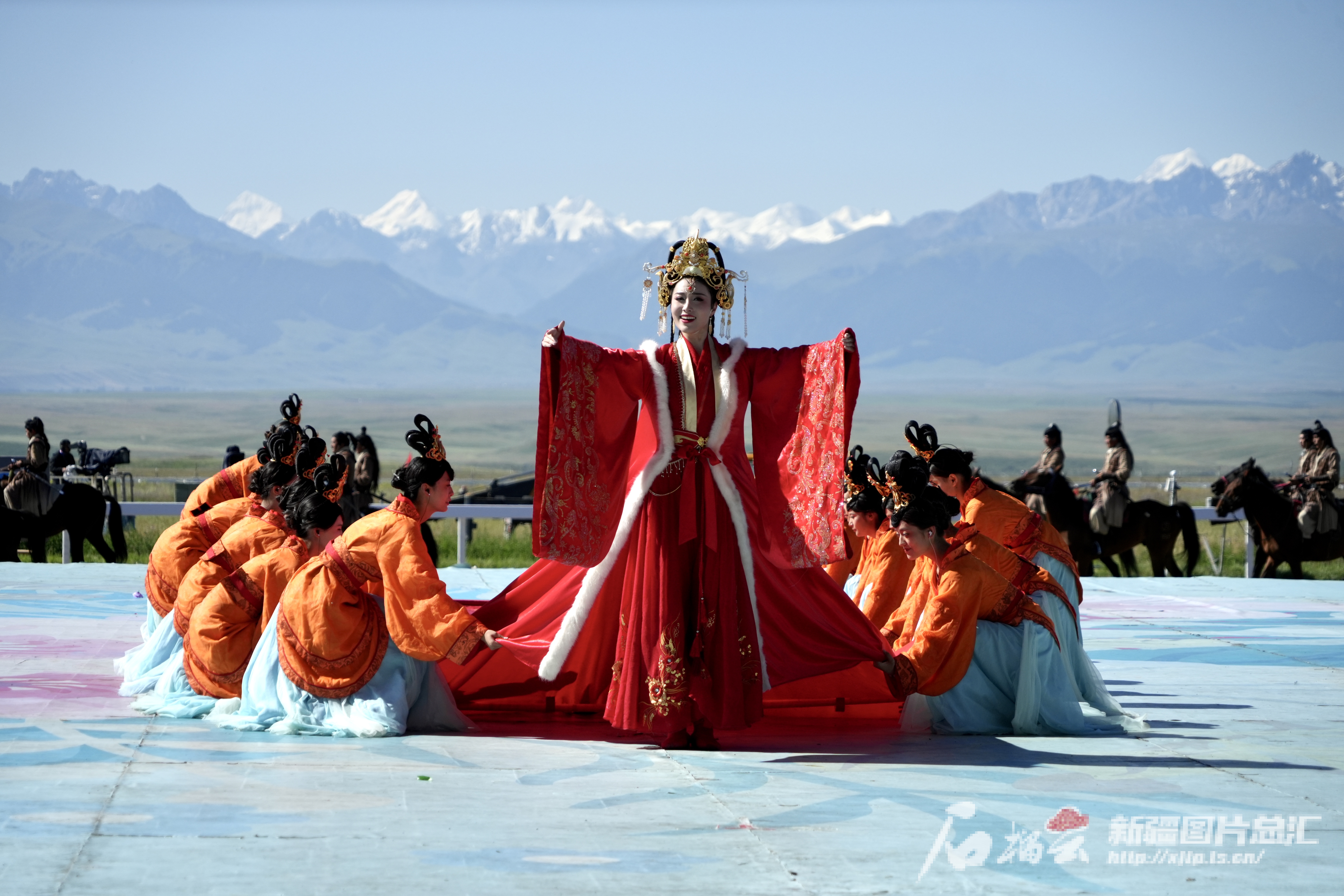 “丝路长歌”篇章中,历史人物张骞、细君公主穿越时空,也来到了大草原,跟牧民一起喝奶茶、织羊毛、制作奶制品;一匹匹马儿在战士指挥下奔跑在赛场上,昭苏草原“军马送唐山”的佳话在此演绎,一幕幕感人的画面让大家共同感受中华儿女手足相亲、守望相助的深厚情感。