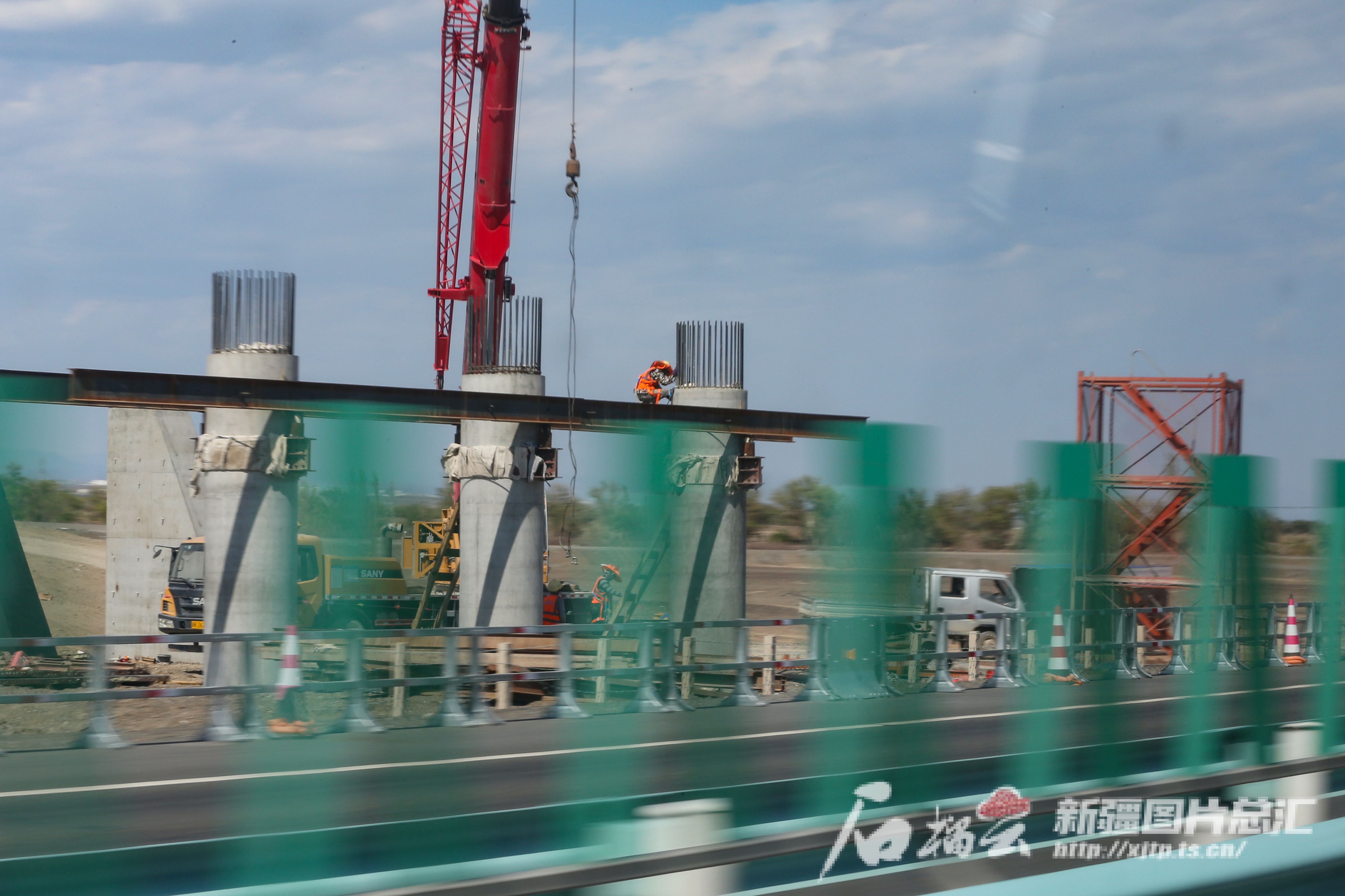7月30日,施工机械在G30连霍高速公路哈密至吐峪沟段改扩建工程鄯善段进行桥涵施工。
