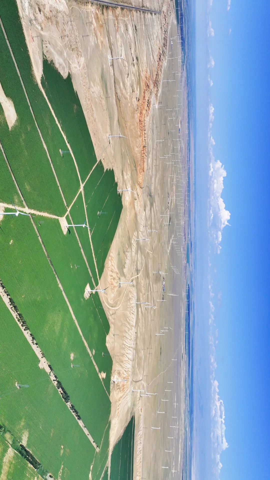 位于阿勒泰地区布尔津县的风电场与向日葵花海。摄影师@努尔别克·努尔曼