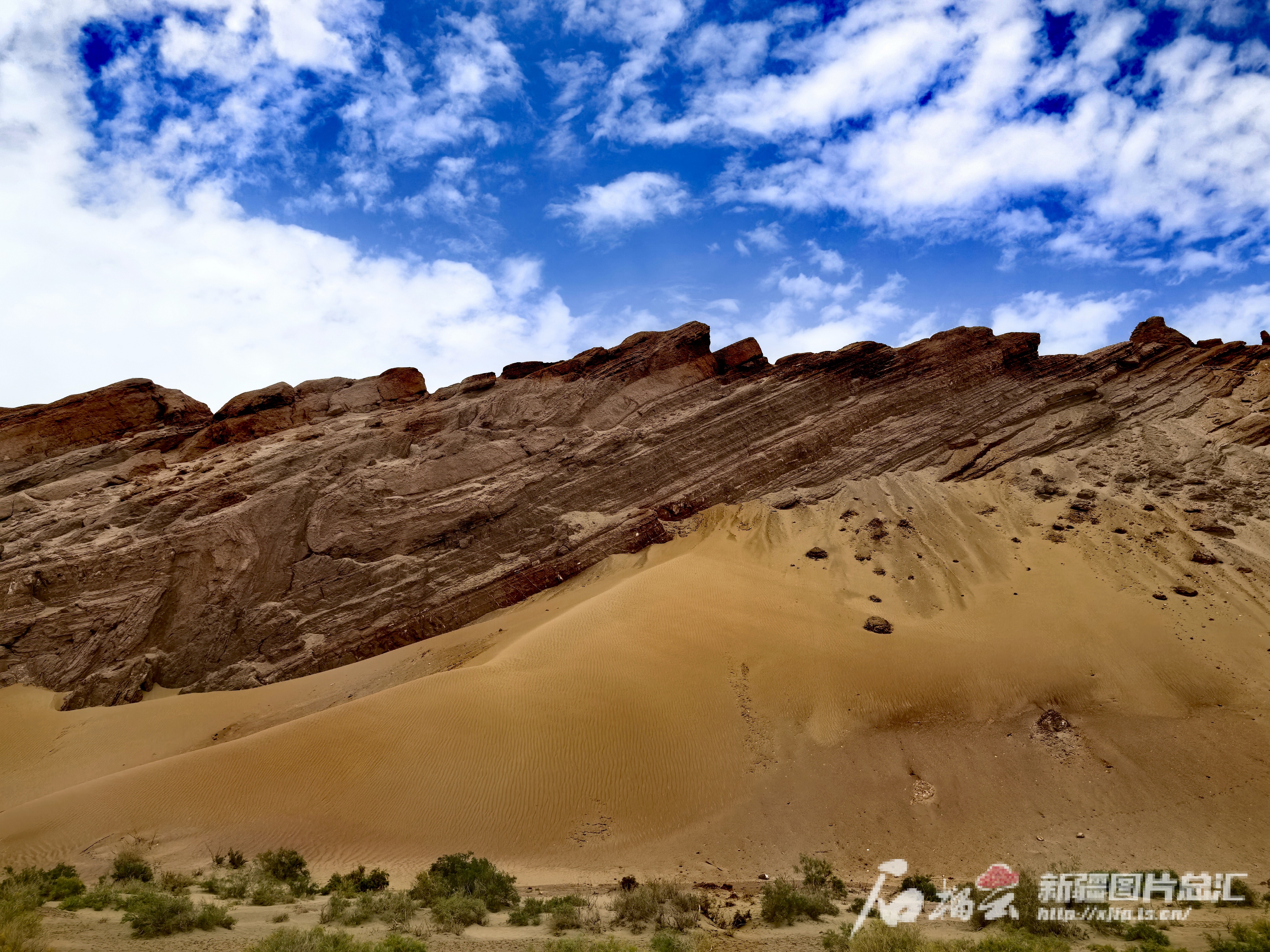 在沙漠中拔地而起的红白山。天山网-新疆日报记者 肖春飞摄