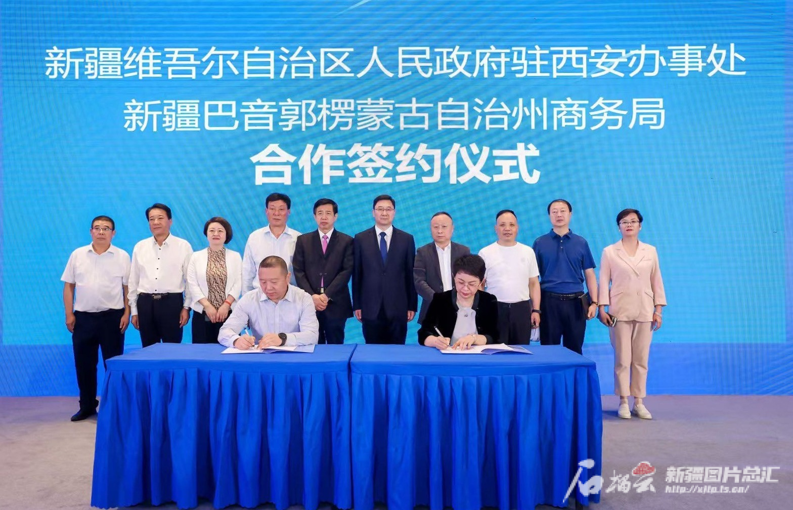 自治区人民政府驻西安办事处与巴音郭楞蒙古自治州商务局现场签订了招商引资战略合作协议。