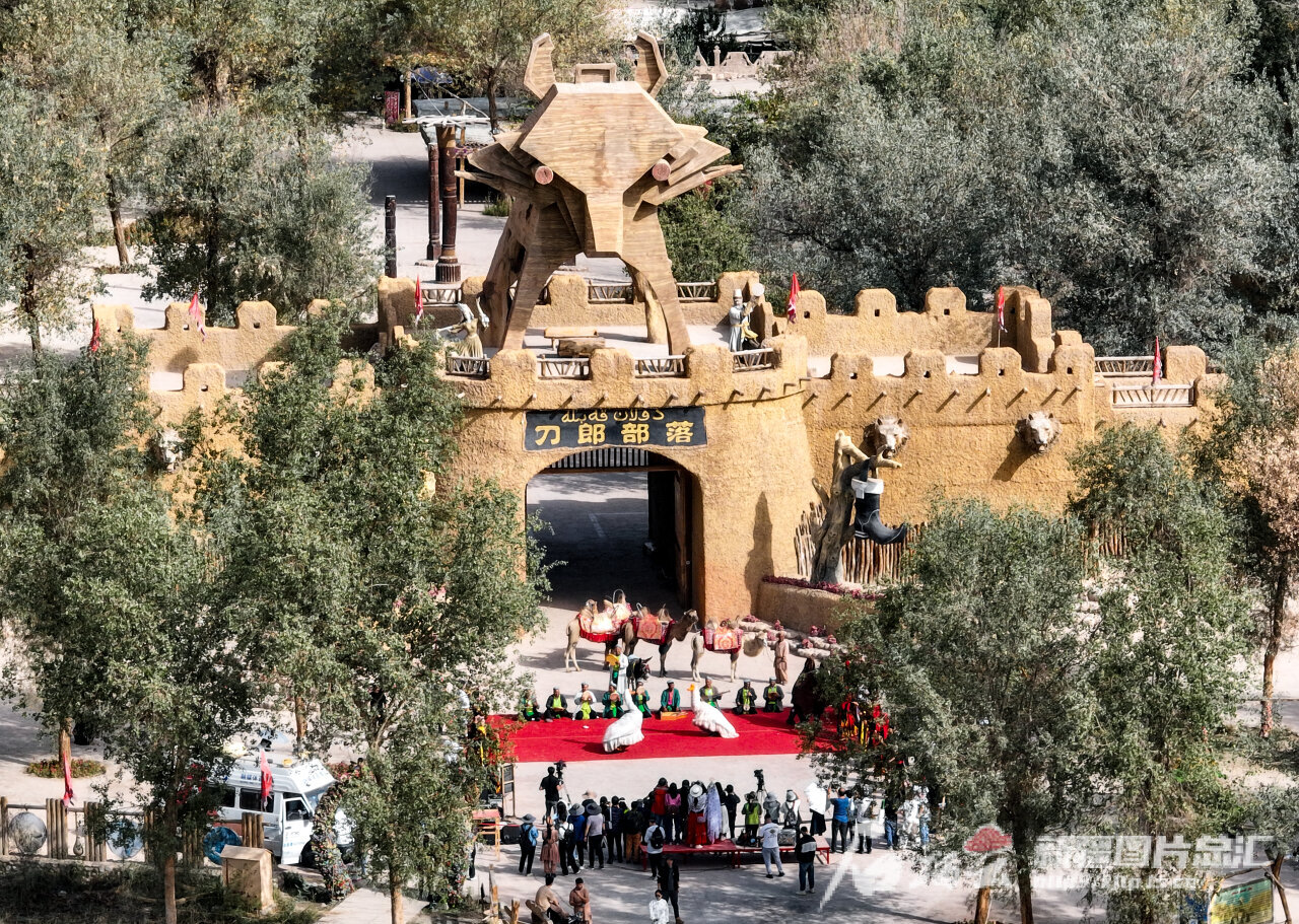 9月25日,俯瞰阿瓦提县刀郎部落景区(无人机摄)。
