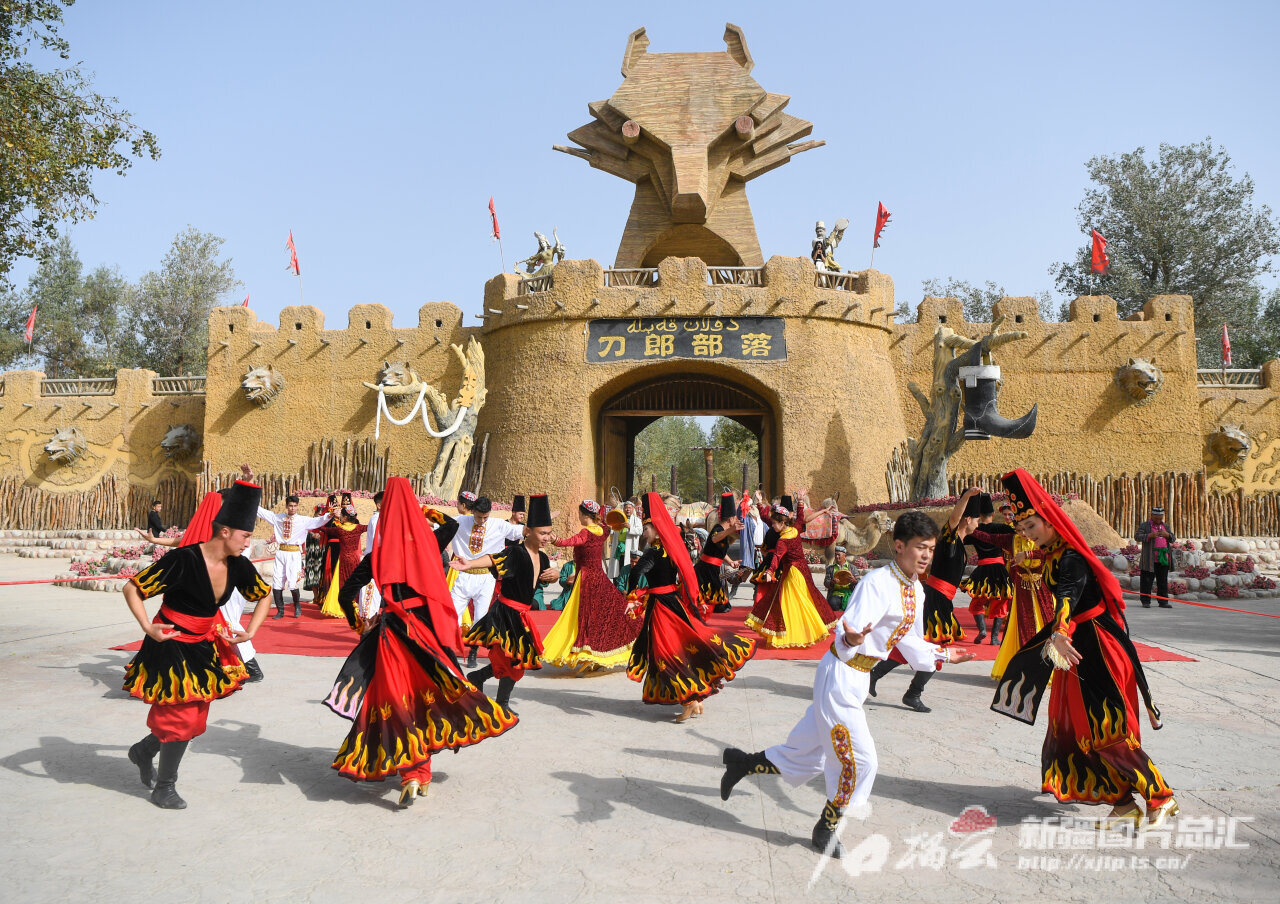 9月25日,演员在阿瓦提县刀郎部落景区表演。