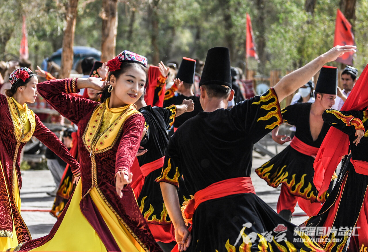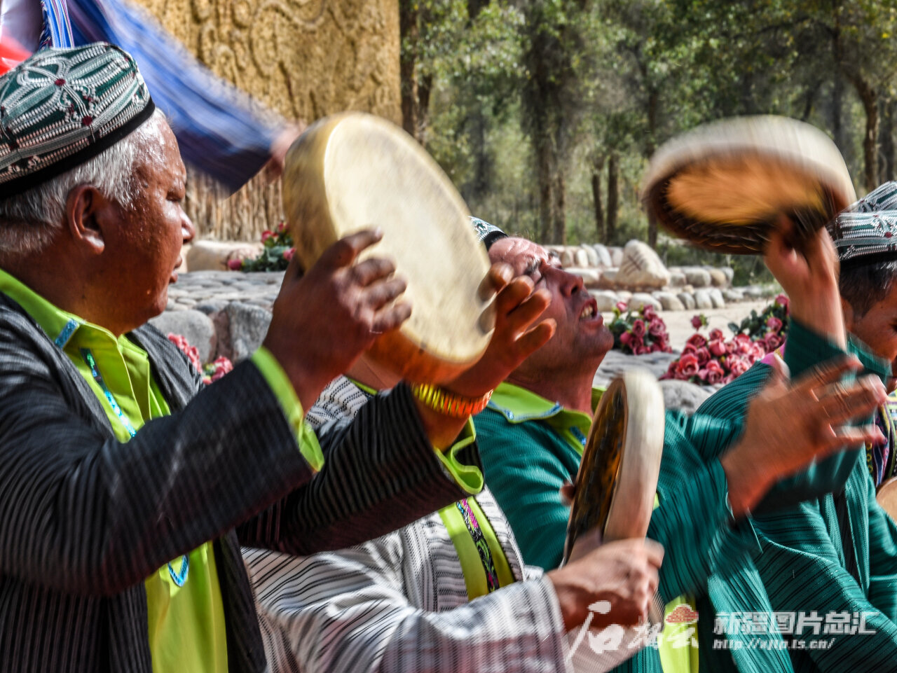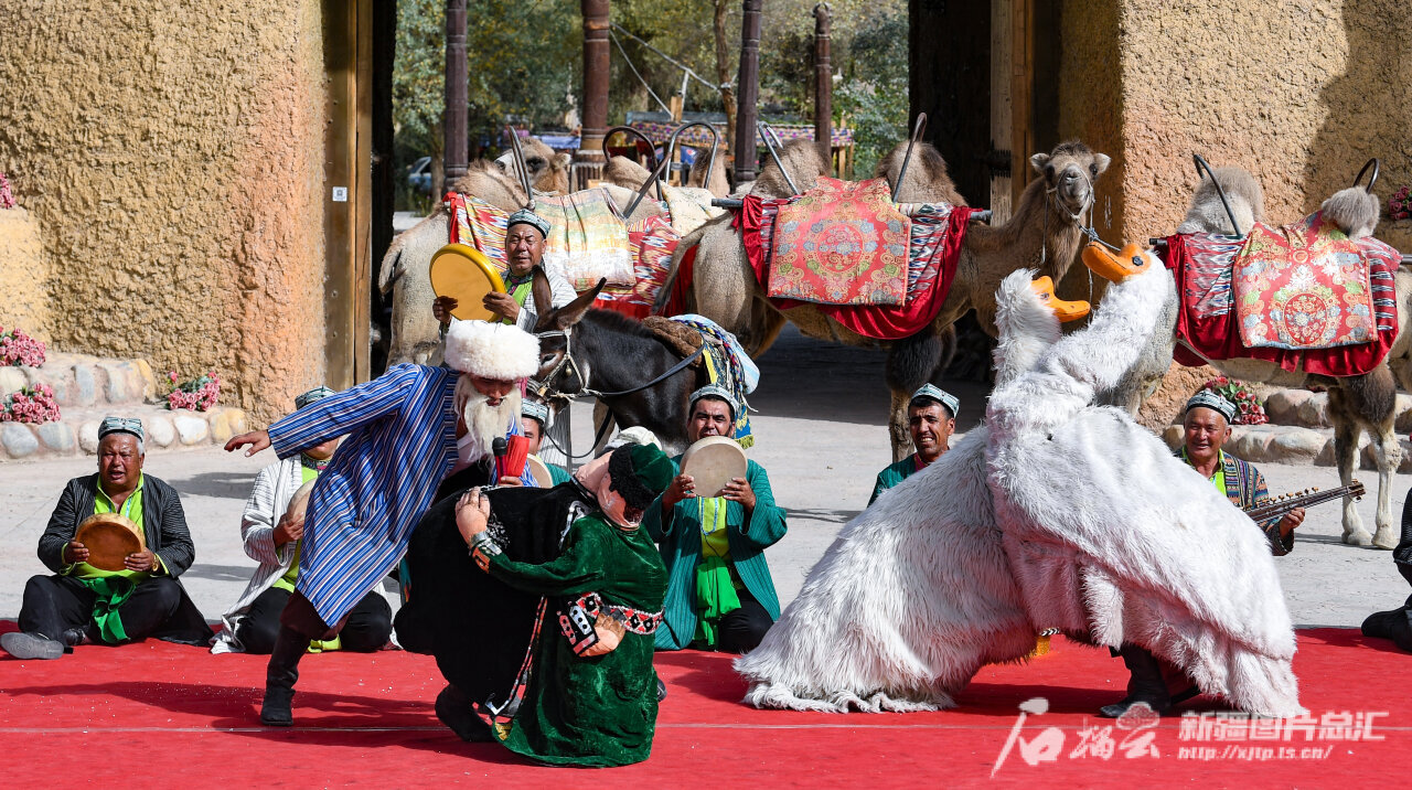 石榴云/新疆日报讯(记者周鹏 摄影报道)9月25日,民间艺人在阿瓦提县刀郎部落景区表演刀郎麦西热甫,引得游客欢呼声、掌声不断。阿瓦提县作为刀郎文化的发源地之一,刀郎麦西热甫、刀郎木卡姆、慕萨莱思酿造工艺、刀郎热瓦普艺术等8项民间艺术已被列入自治区级非物质文化遗产保护项目名录,其中刀郎麦西热甫被列入国家级非物质文化遗产保护项目名录。