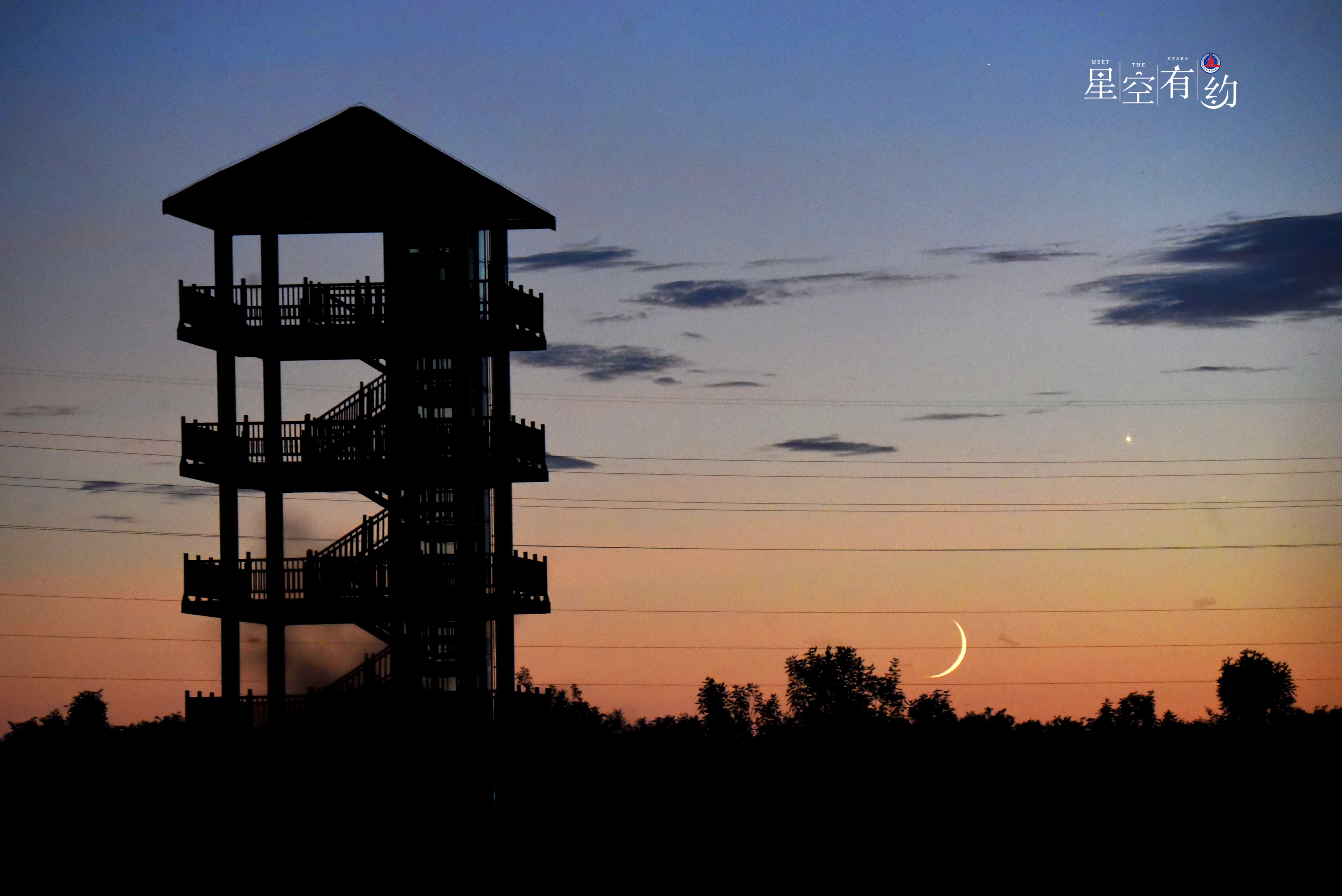 作为太阳系中距离太阳第二近的行星,金星总是在太阳附近徘徊,我们能够看到它的时间只能是黎明或傍晚,所以月球与之相伴时,月相要么是农历月初的蛾眉月,窄窄的;要么就是农历月末的残月,细细的,亮度均不高。弯弯的月牙和明亮的金星极为匹配,无论是拍摄还是目视,都非常合适。