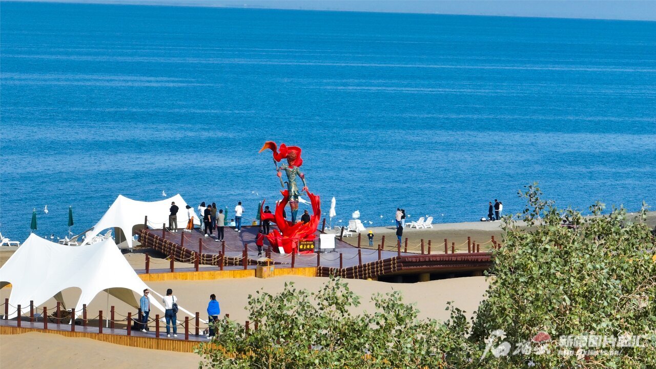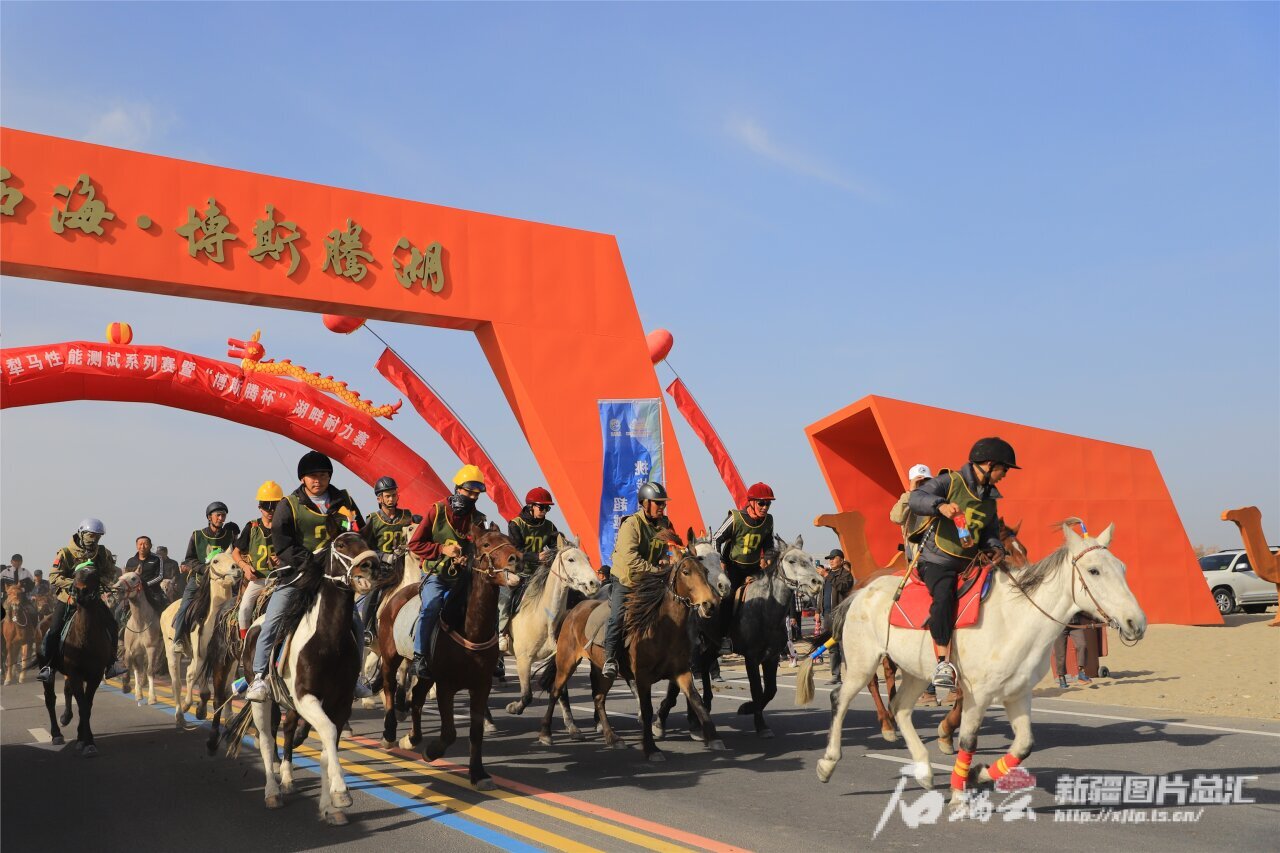10月13日,2024和美乡村·伊犁马性能测试系列赛暨“博斯腾杯”湖畔赛马耐力赛在博湖县博斯腾湖白鹭洲景区开赛,来自全疆的128匹良驹同场竞技,吸引了众多游客和赛马爱好者前来观赏。此次活动不仅展现了赛马运动的激情与速度,更将博斯腾湖畔一半湖水、一半沙漠的壮丽景象完美呈现,为游客们带来了一场视觉与心灵的双重盛宴。