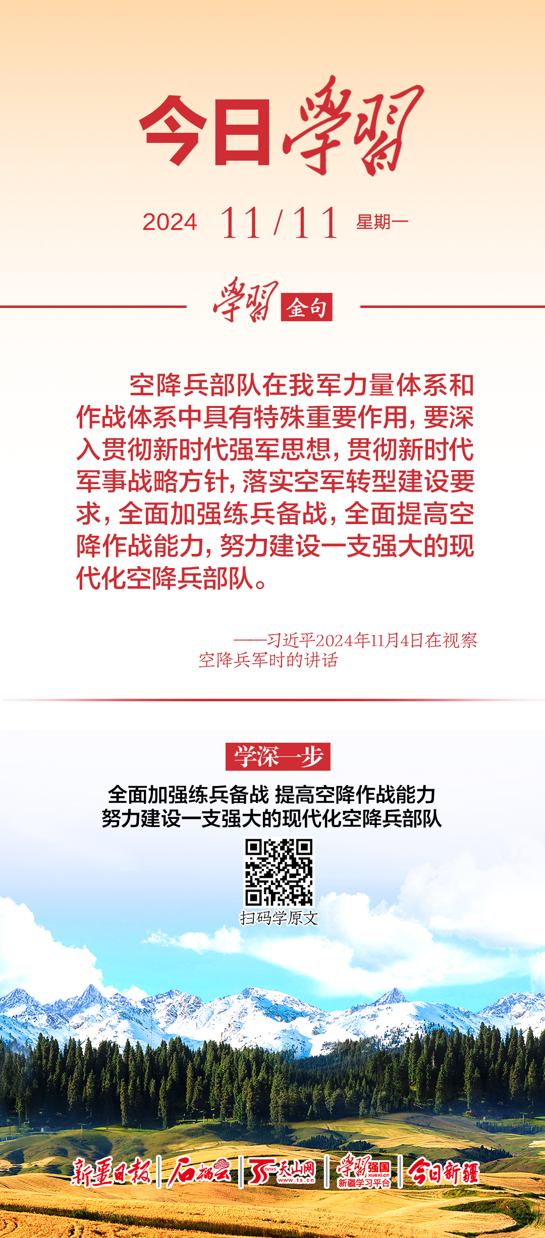 ——习近平2024年11月4日在视察空降兵军时的讲话