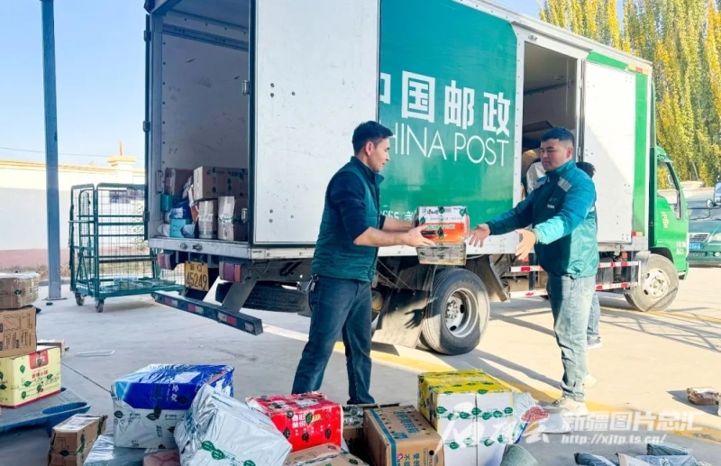在中国邮政集团有限公司疏附县邮政分公司邮件处理中心,工作人员正在有序收拣快递。阿依谢姆古丽·艾散 摄
