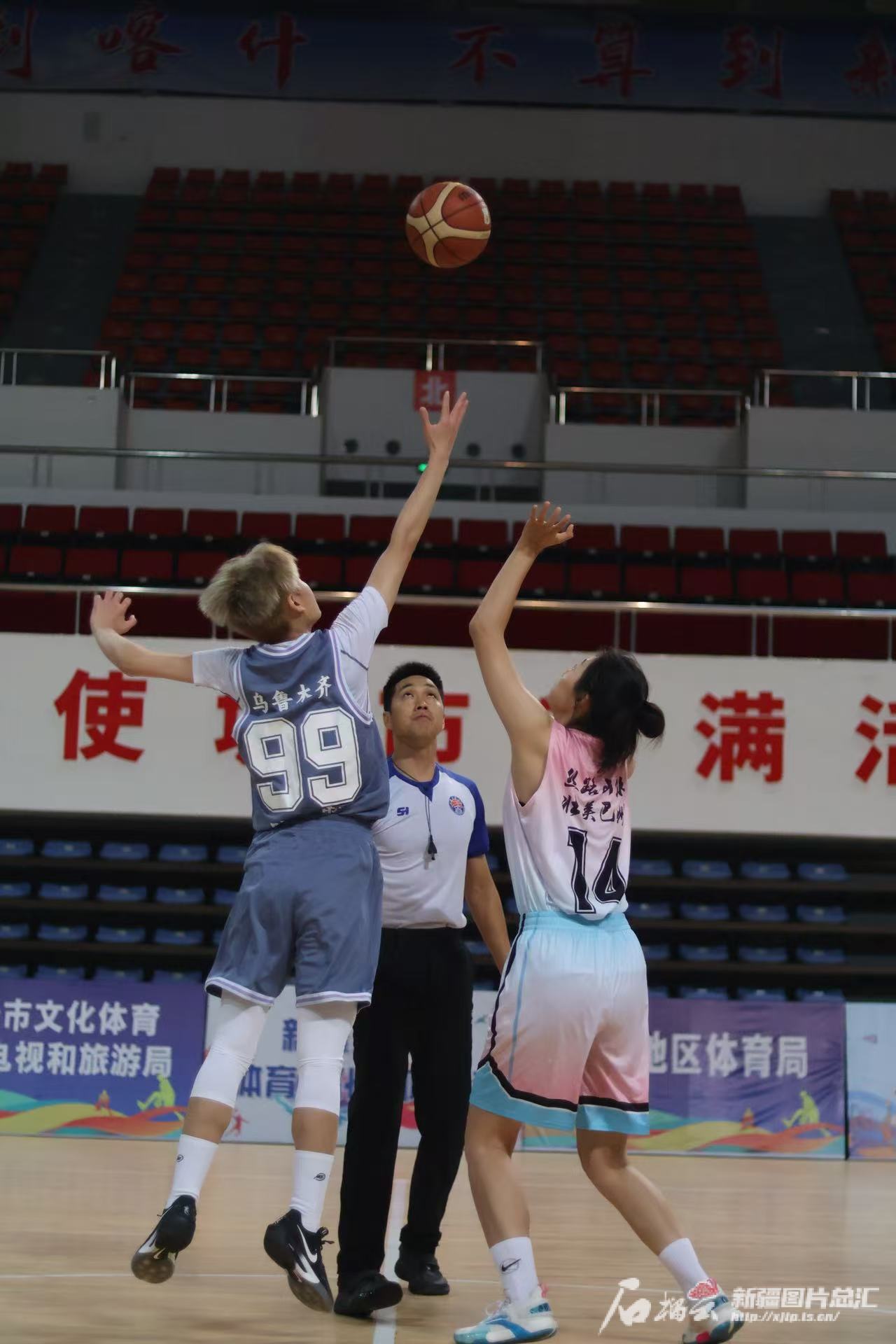 “新疆是个好地方·石榴籽杯”2024年新疆群众“三大球”联赛女子篮球总决赛现场。赵晓峰摄