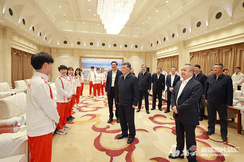 11月25日,自治区党委书记、兵团党委第一书记、第一政委马兴瑞,自治区党委副书记、自治区主席艾尔肯·吐尼亚孜在乌鲁木齐会见国家体育总局党组书记、局长高志丹和参加“决胜巴黎·绽放奥运——奥运冠军面对面”巡回宣讲活动的奥运健儿代表。天山网-新疆日报记者 崔志坚摄