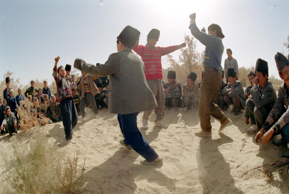 1999年,人们在婚礼现场跳着民族舞蹈。