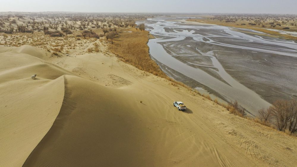 2019年11月18日,满载着依明一家和行李的车辆行驶在克里雅河畔,前往达里雅布依新村。