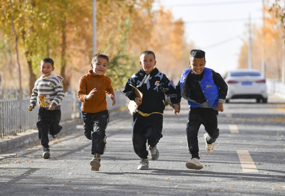 2024年11月9日,小朋友奔跑在达里雅布依新村。