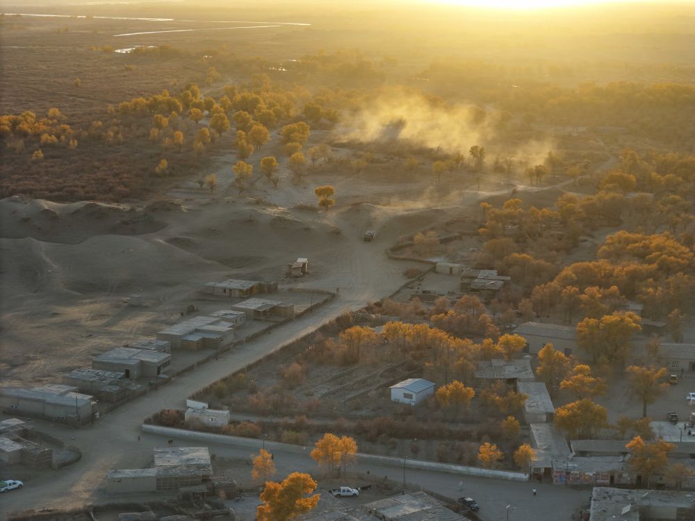 传统民居、成片胡杨是牧民原始生活的见证者