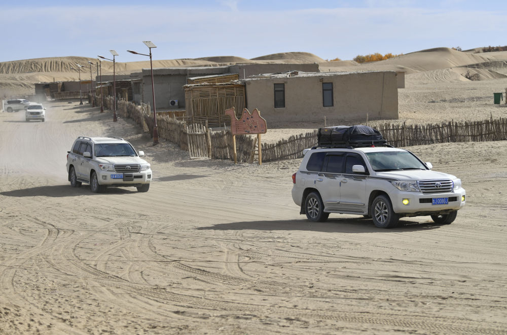 2024年11月6日,自驾游客开车行驶在新疆于田县达里雅布依旧址景区。