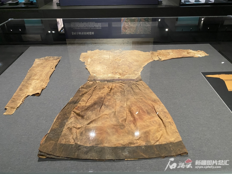 陈列于新疆博物馆中的元代瑰宝——黄色油绢织锦边祆子。天山网-新疆日报 记者赵梅摄