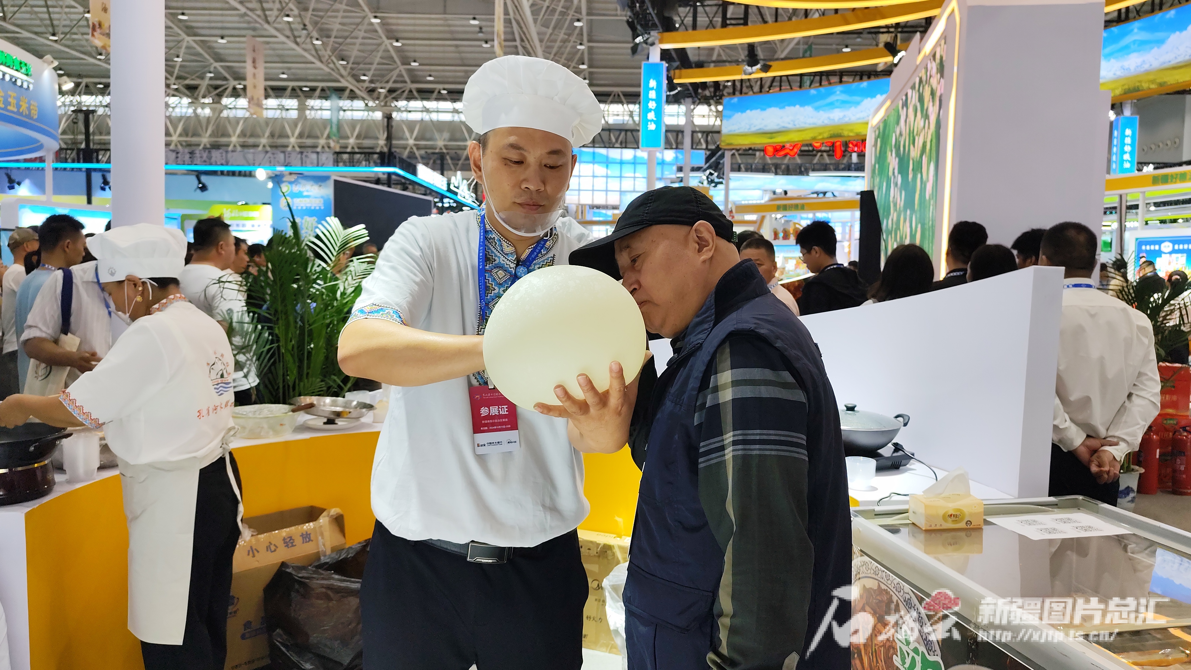 10月18日,第六届中国粮食交易大会期间,新疆参展商现场展示面团吹气球。石榴云/新疆日报记者 刘毅摄