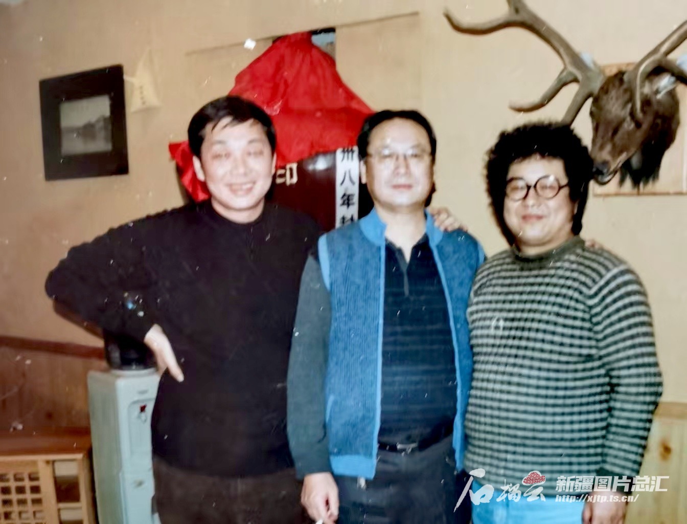 作者(左)与作家周涛(中)、北野(右)。 本人供图