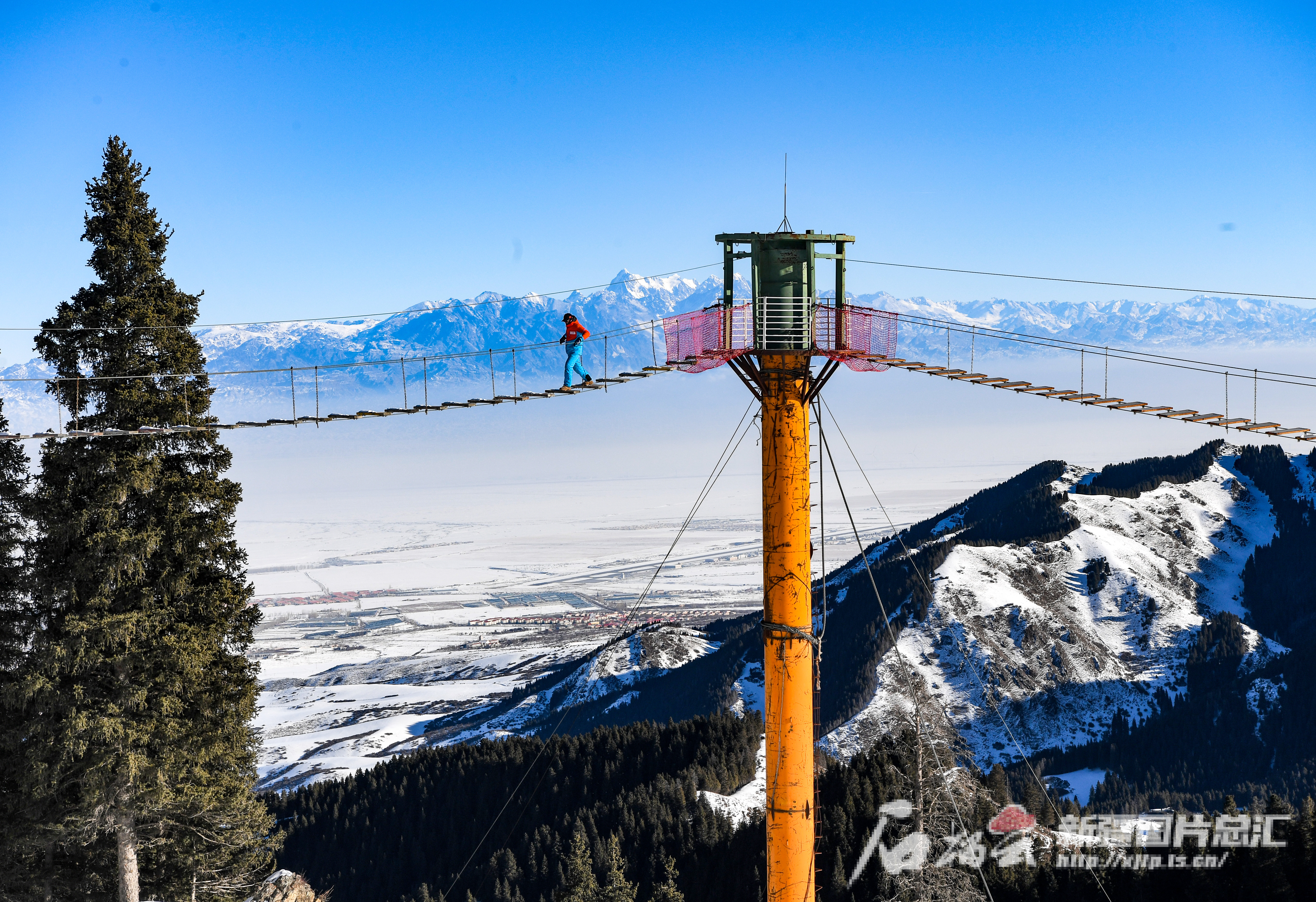 12月13日,游客在位于乌鲁木齐县水西沟镇的丝绸之路山地度假区游玩。