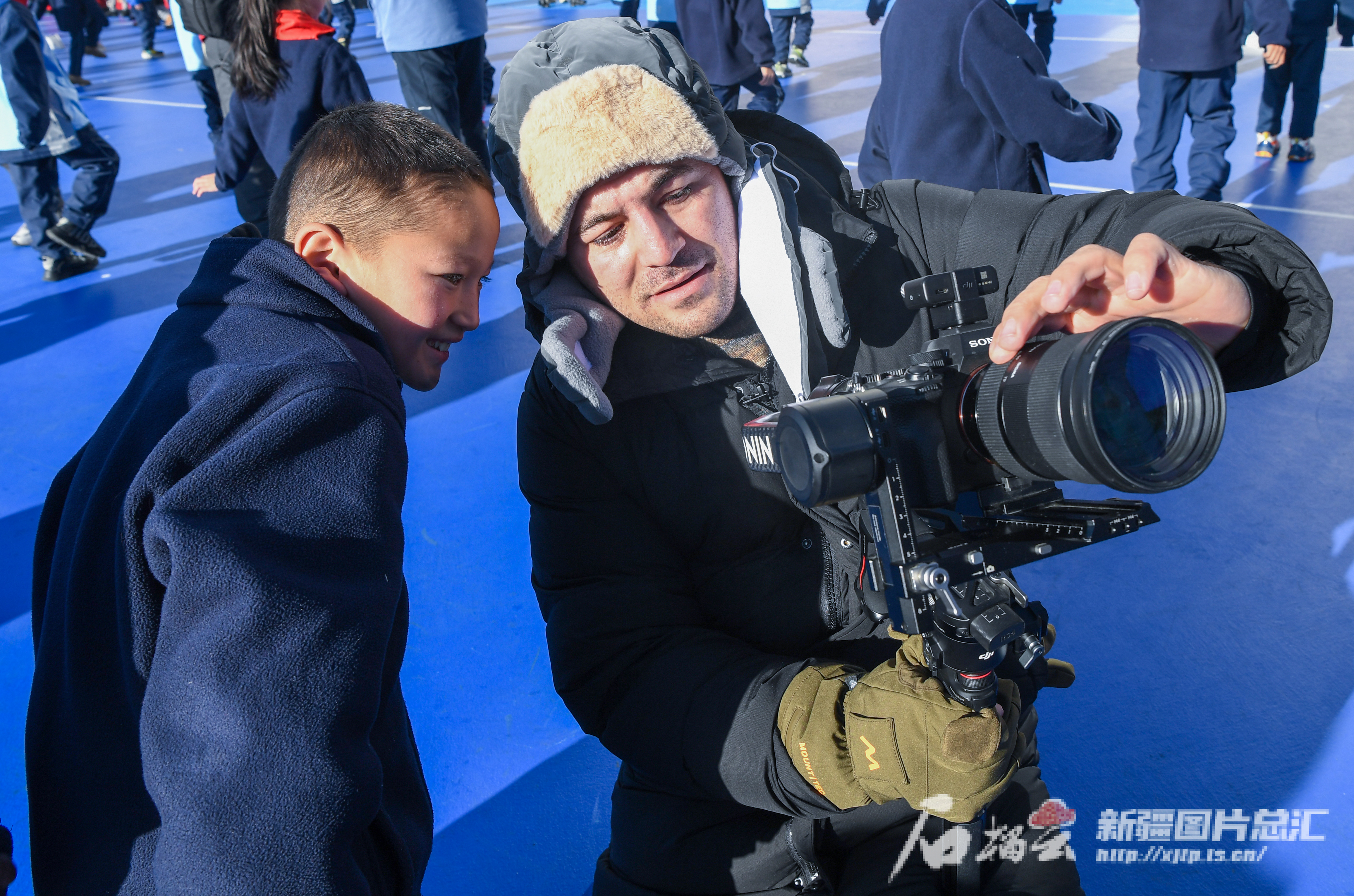12月13日,一名外国记者在乌鲁木齐县第一中学与学生互动。