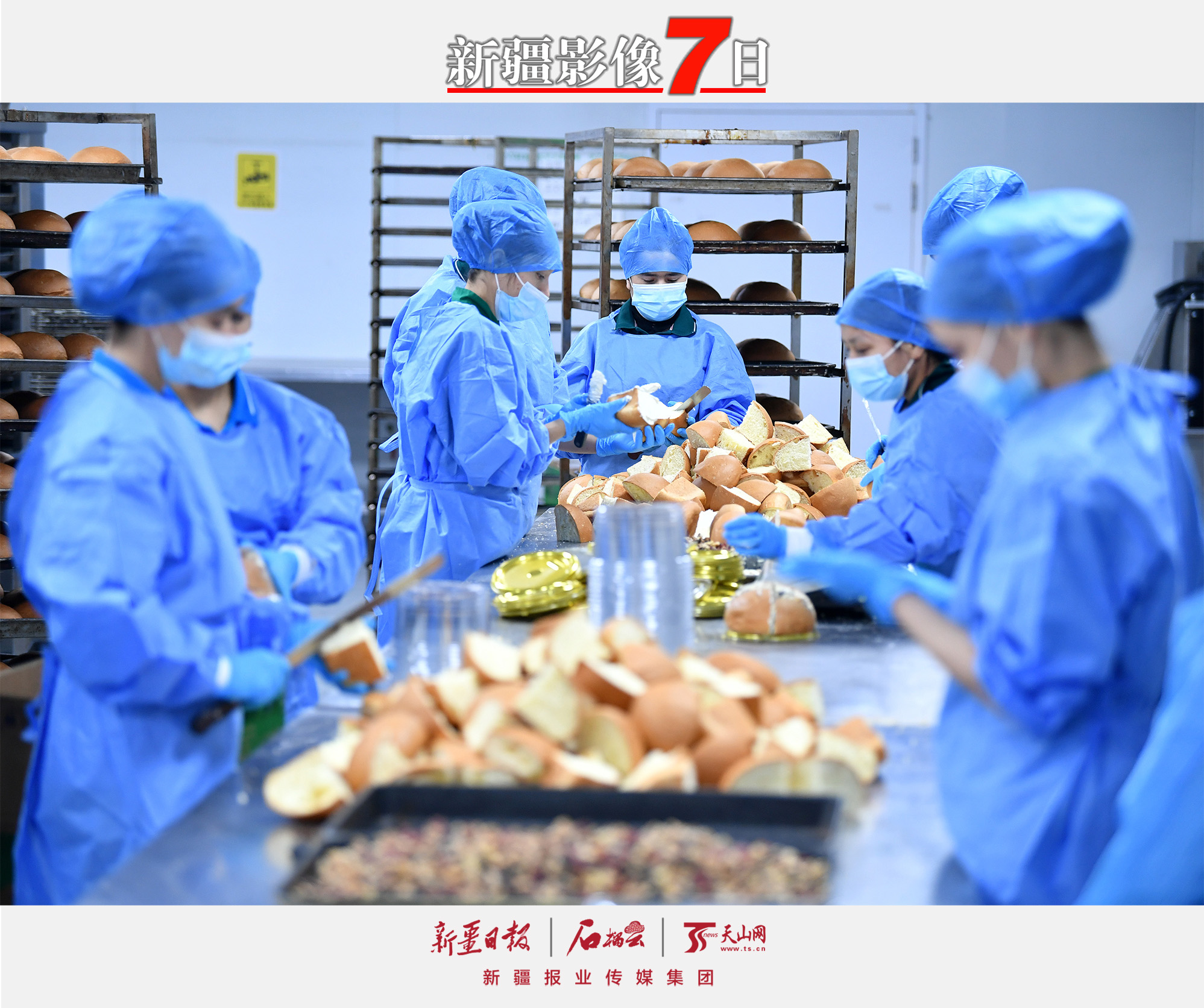 12月11日,位于乌鲁木齐市的新疆夏贝尔食品有限公司工作人员在生产车间加工生产奶酪包。近年来,该公司大力开拓疆外市场,邀请网红达人走进企业开展产地溯源和网络直播,通过线上+线下联动,提升产品知名度,拓宽销售渠道,产品畅销北上广。天山网-新疆日报记者 邹懿摄