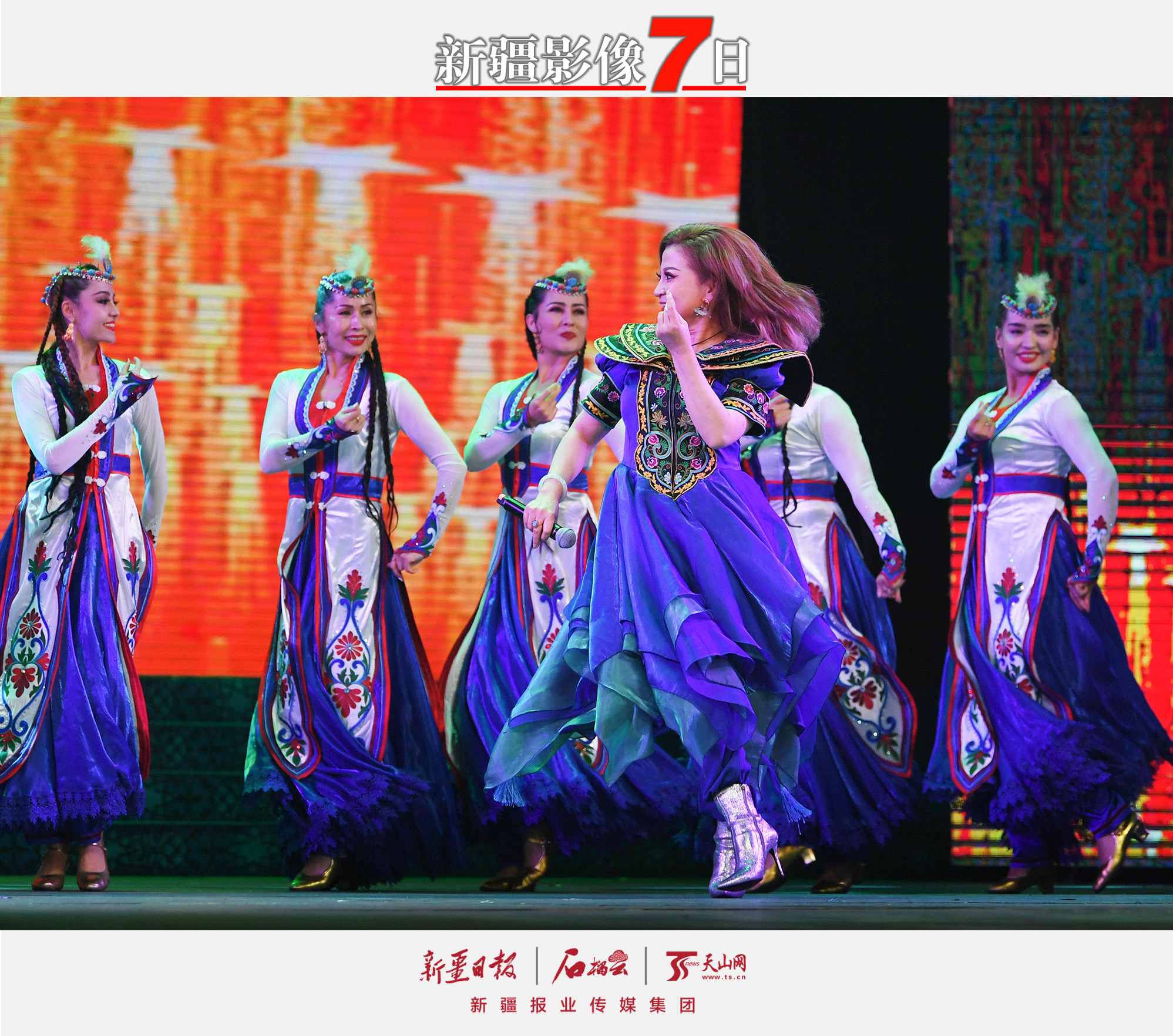 12月12日,新疆艺术剧院歌剧团演员在表演歌伴舞《爱你一遍遍》。当晚,由新疆艺术剧院歌剧团主办的桥丽拜·玉努斯“为你而来”歌舞晚会在新疆人民剧场首演。作为星光大道2018年度总决赛冠军,桥丽拜携手新疆艺术剧院歌剧团的演员们,为观众带来了一场精彩的演出。天山网-新疆日报记者 约提克尔·尼加提摄