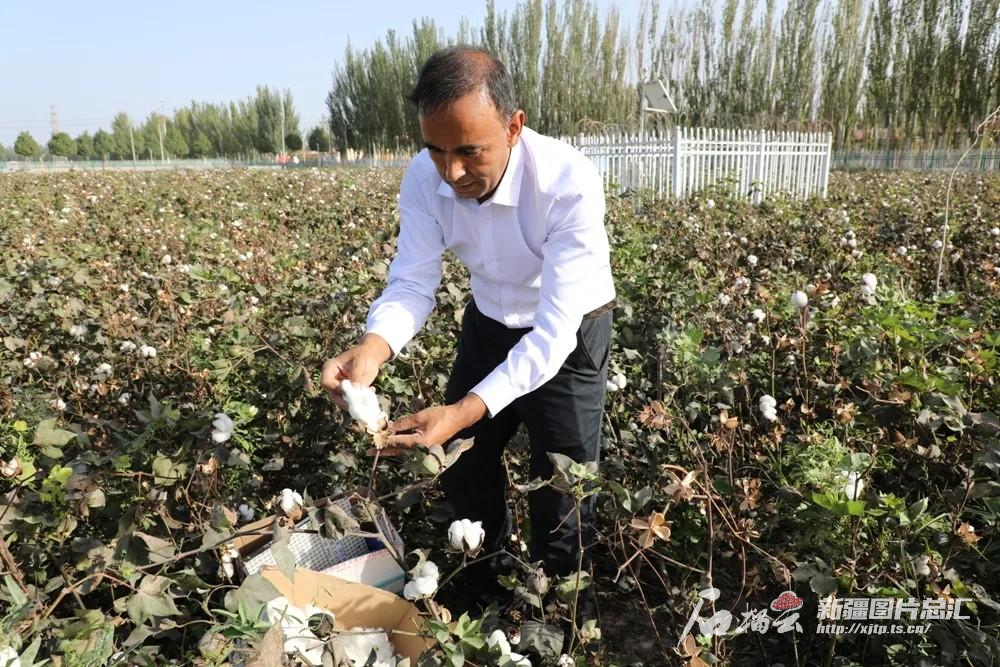 10月1日,新疆喀什地区气象局农业气象服务中心工作人员在棉花观测地段进行吐絮盛期取样工作。毛子卿摄