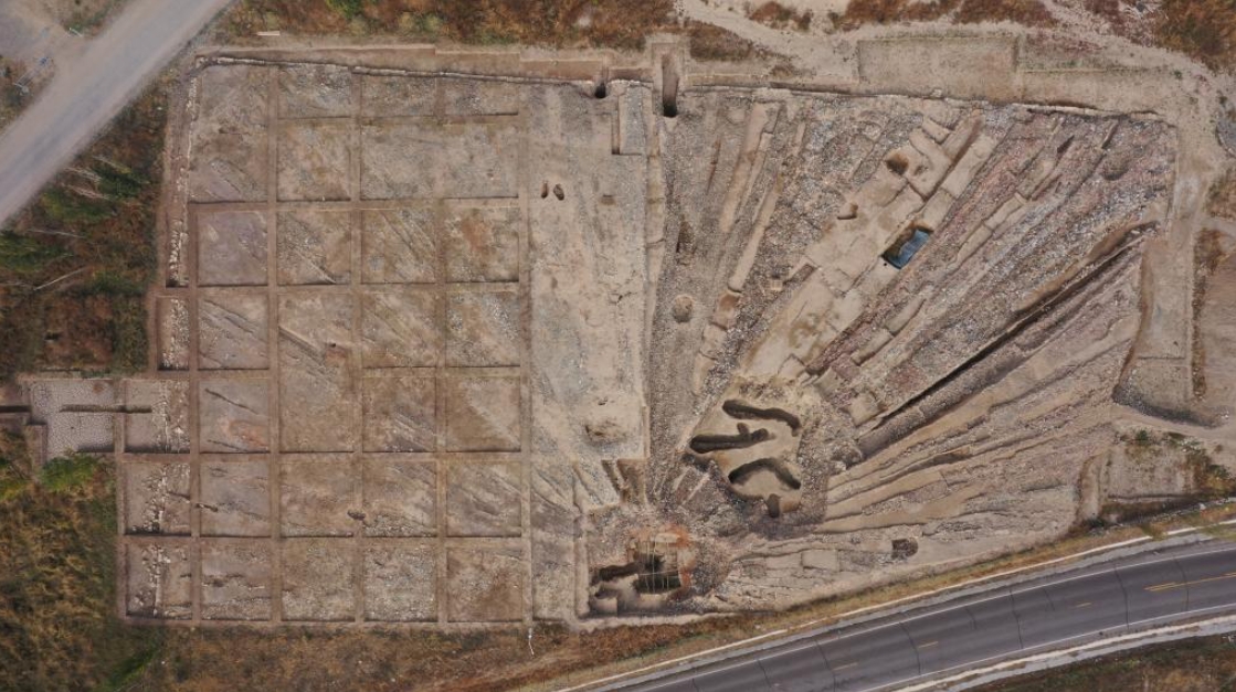 俯瞰新疆尼勒克吉仁台沟口遗址高台遗存发掘现场。
