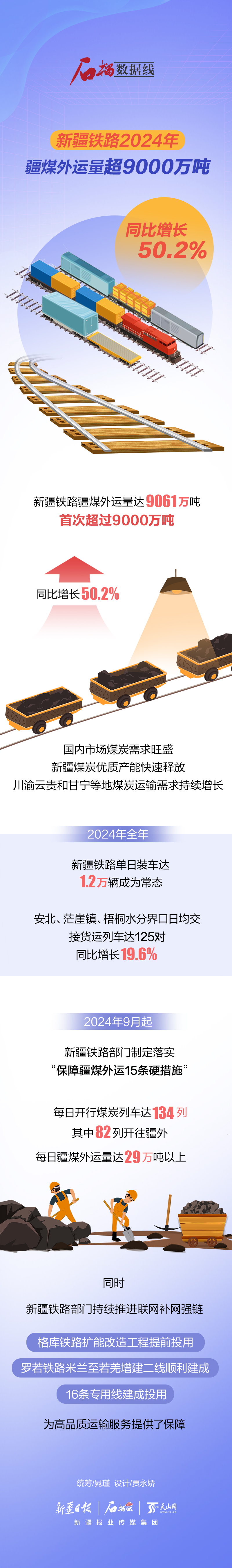 石榴数据线丨新疆铁路2024年疆煤外运量超9000万吨