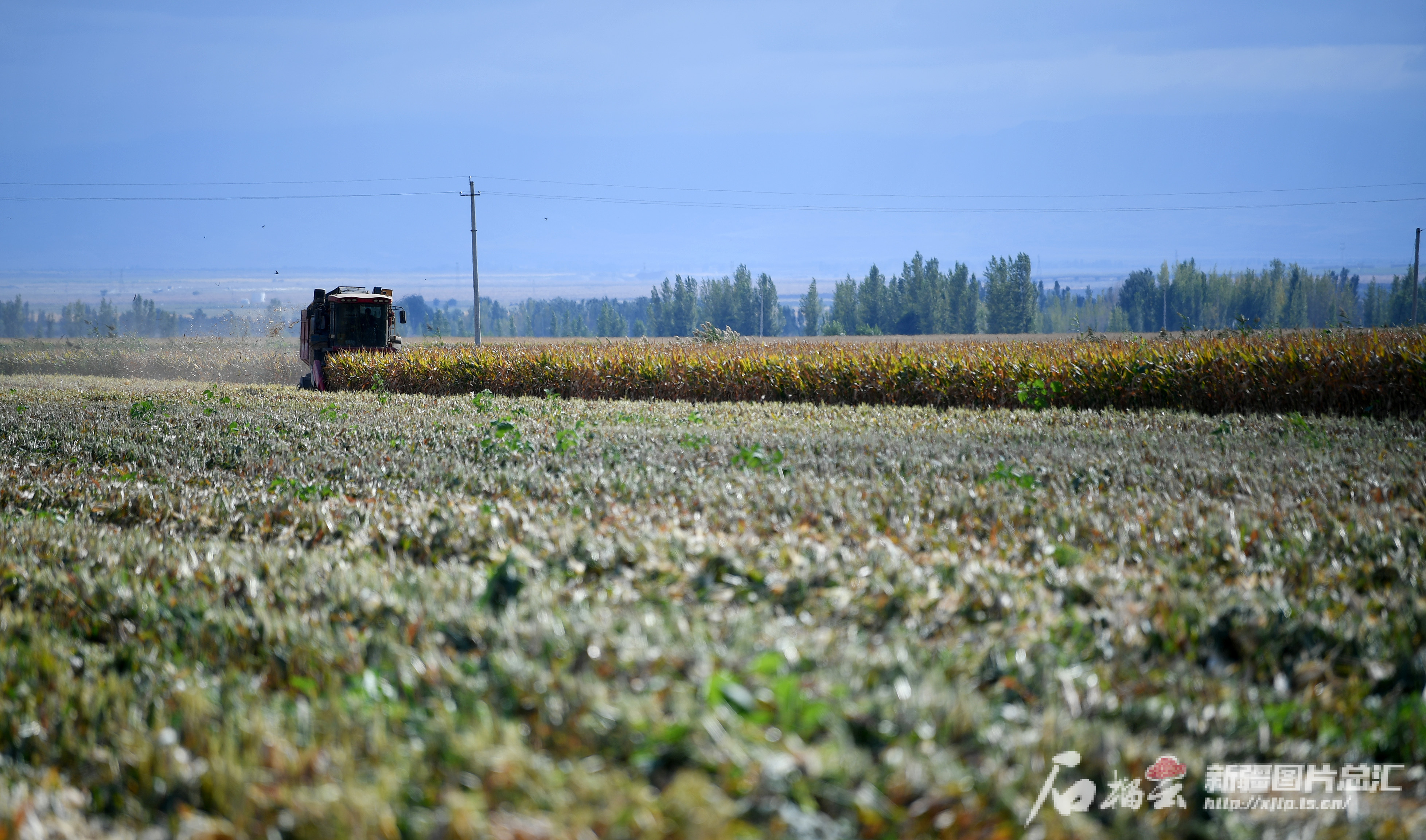 2024年9月26日,工作人员驾驶玉米收割机在察布查尔锡伯自治县爱新色里镇安巴帖村的玉米地里收割玉米。天山网-新疆日报记者 邹懿摄(资料图)