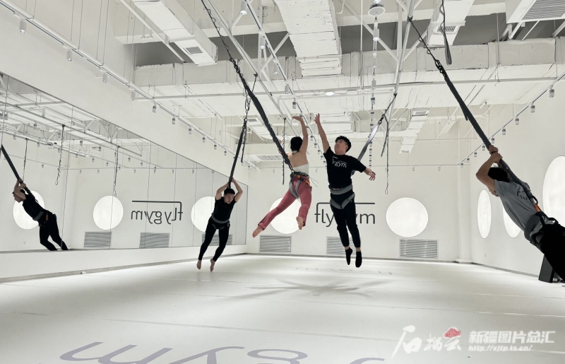健身爱好者们在教练带领下体验室内锻炼。记者任华 摄