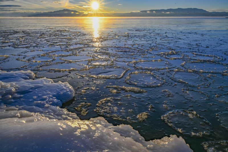 12月23日,赛里木湖湖边的“冰馕”(无人机照片)。新华社记者 陈朔 摄