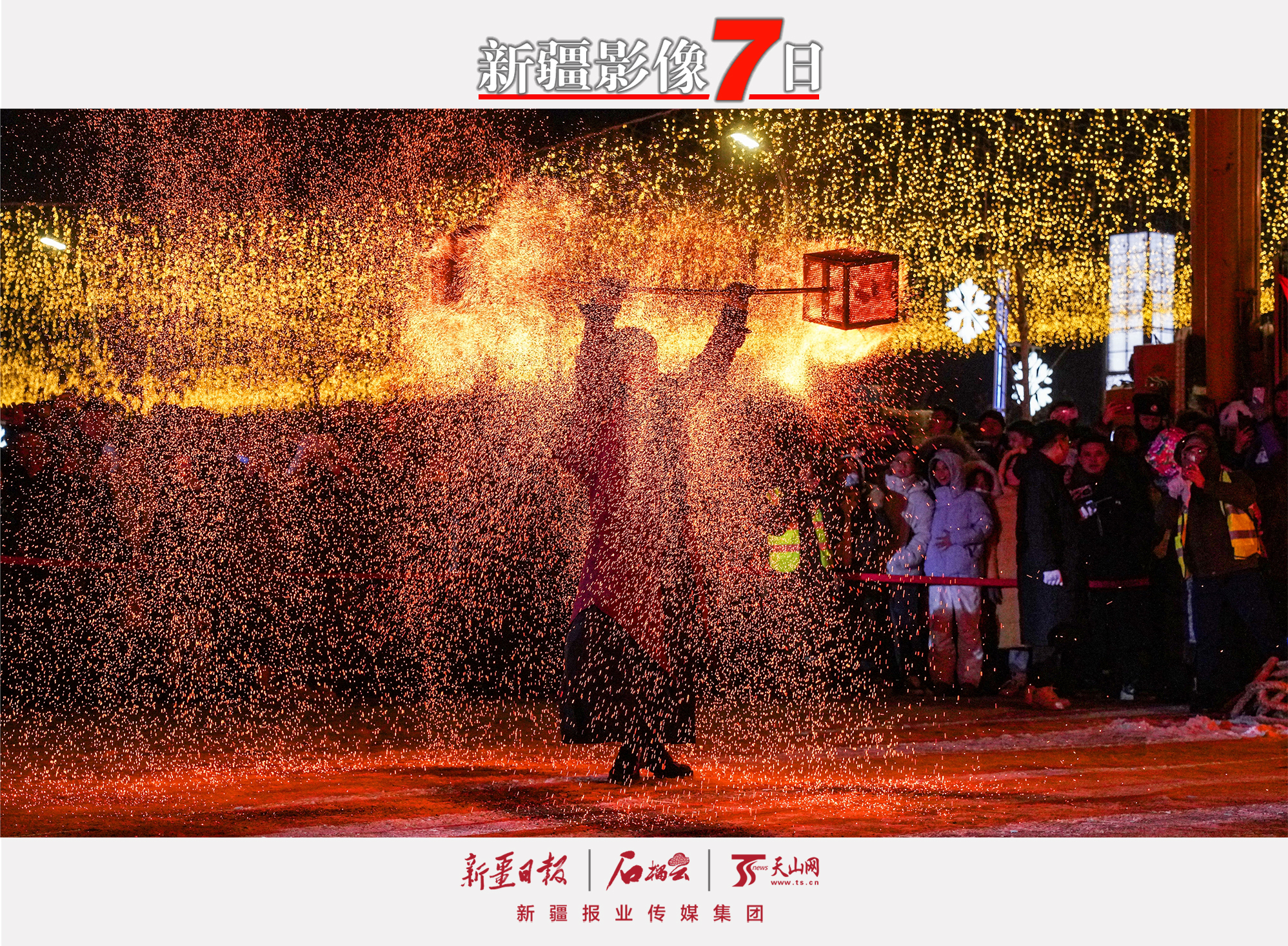 2024年12月31日,市民和游客在北屯市玉带河公园观看非遗表演。当晚,以“西北之北·冰城北屯”为主题的北屯市第四届“冰城”文化旅游节开幕式暨跨年狂欢夜在玉带河公园举行,市民及游客齐聚一堂,欣赏文艺演出、非遗表演、烟花秀,共同迎接新年的到来。陈洋 摄