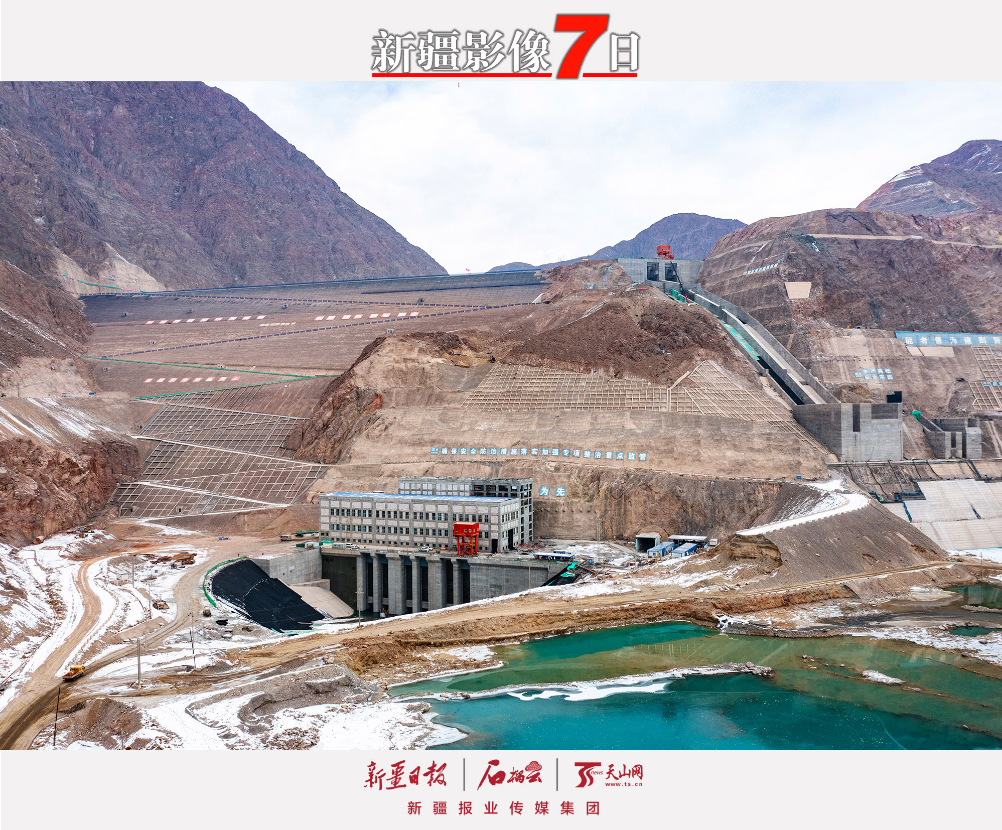2024年12月30日,俯瞰新疆大石峡水利枢纽工程外景。当日,世界已建最高混凝土面板砂砾石坝——新疆大石峡水利枢纽工程大坝顺利填筑封顶。天山网-新疆日报记者 豆兴军摄