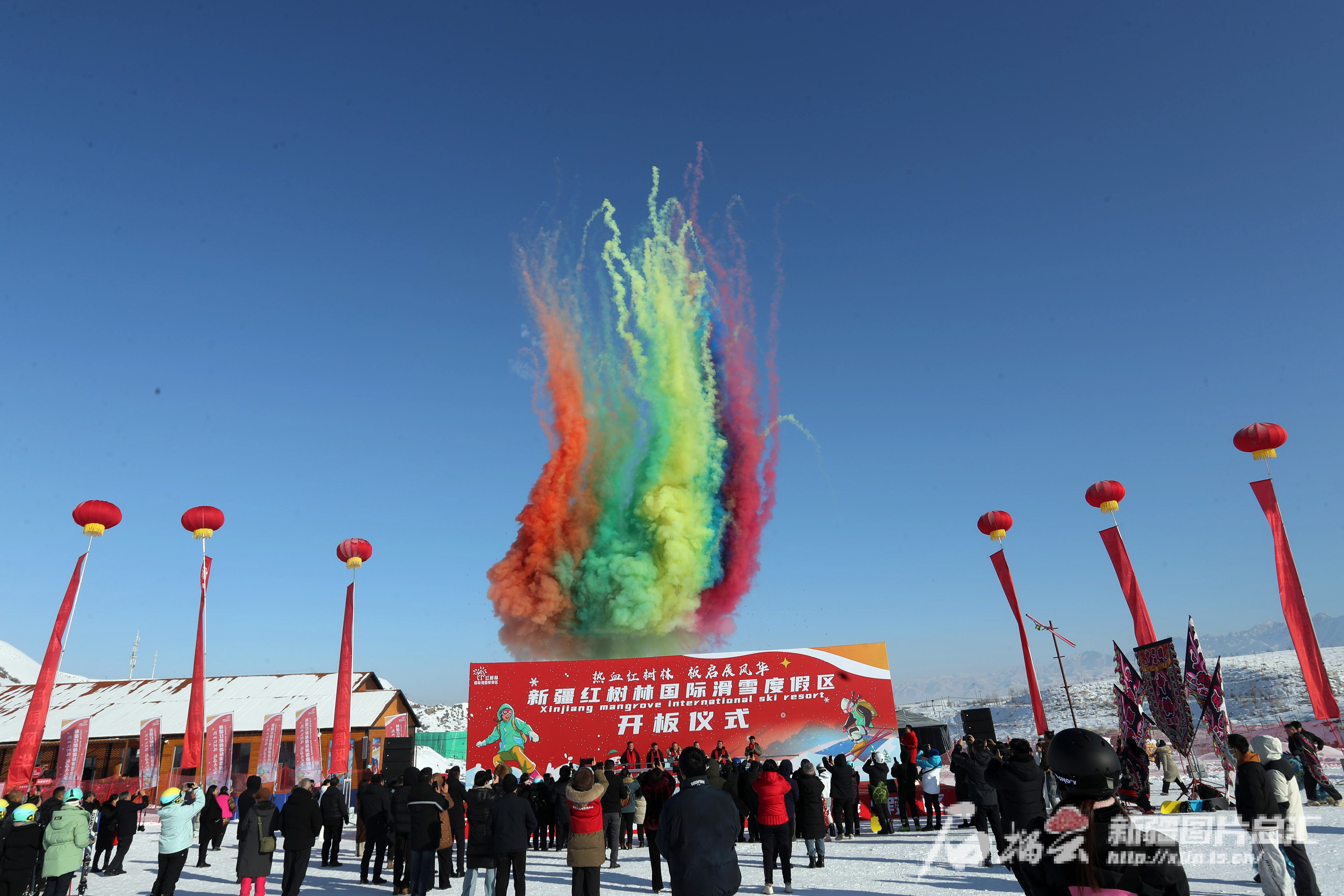 1月11日,新疆红树林国际滑雪度假区开板仪式现场。