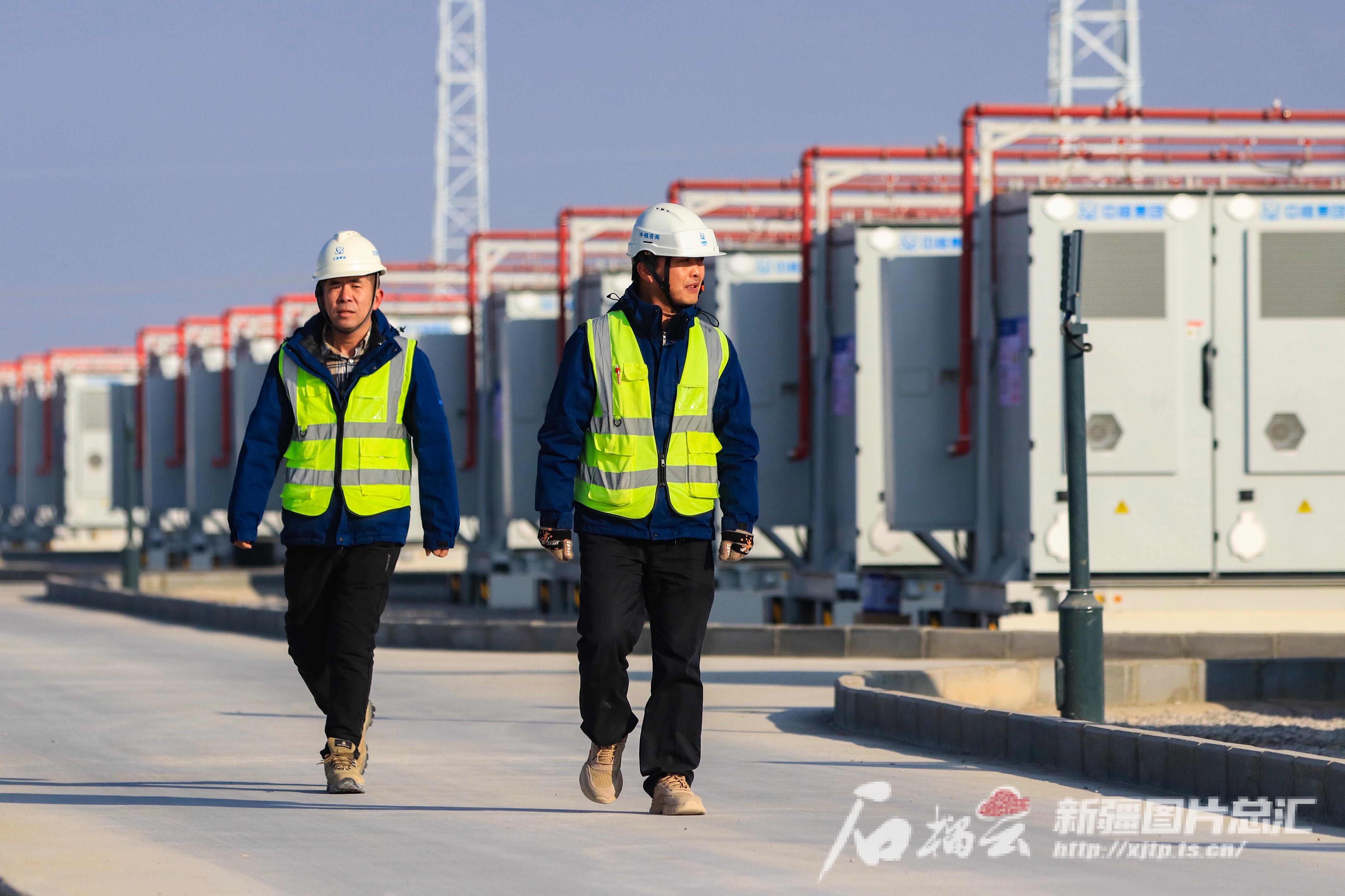 1月9日,工作人员在新华乌什50万千瓦/200万千瓦时构网型储能电站巡查。