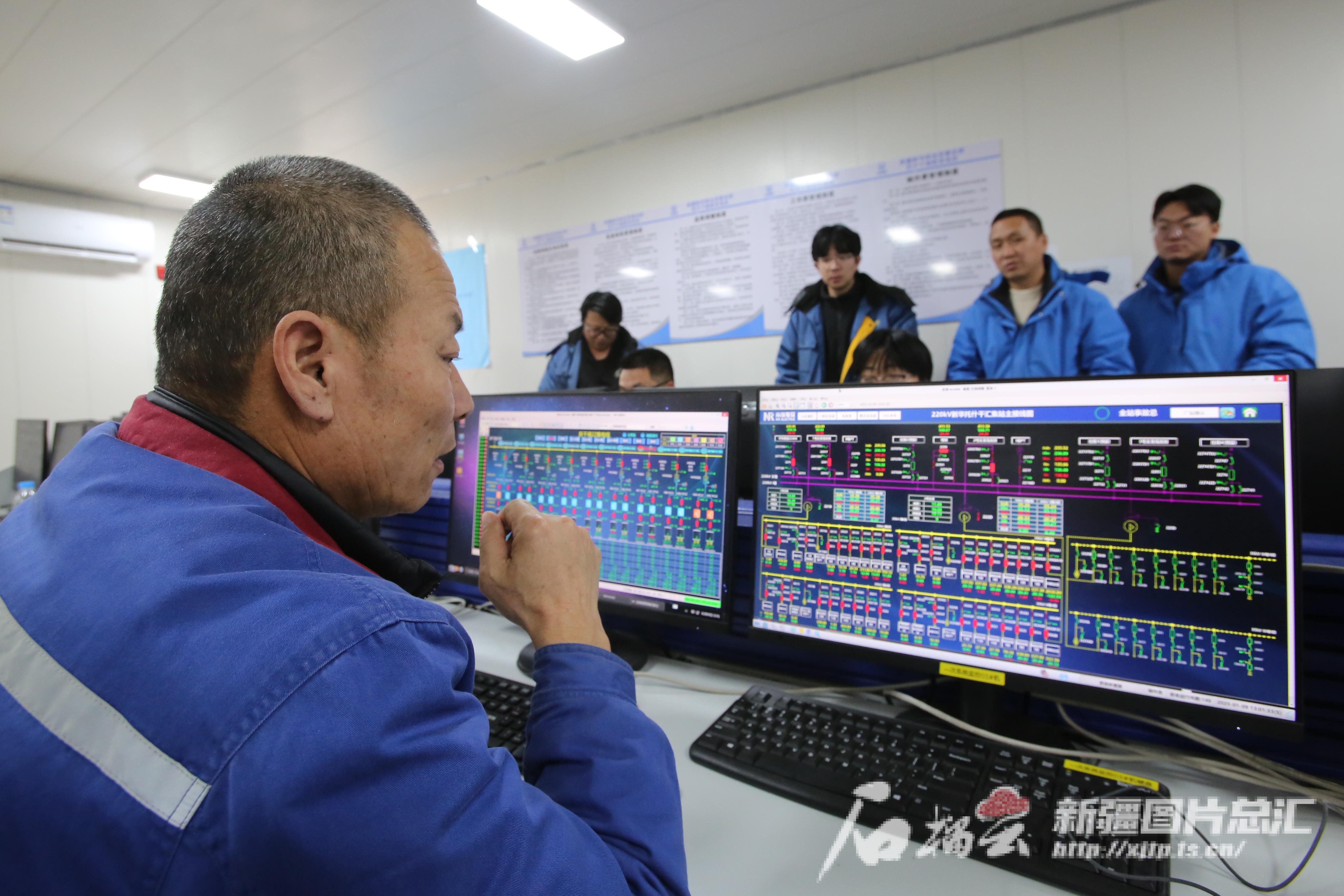1月9日,新华乌什50万千瓦/200万千瓦时构网型储能电站总控室工作人员在监控设备充电情况。
