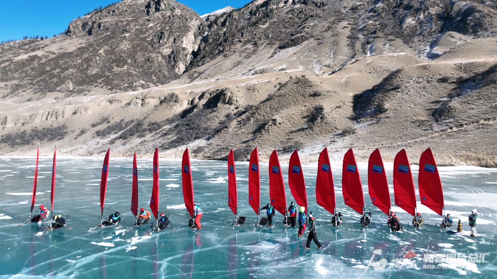 这是第十一届全国大众冰雪季新疆第二届玉湖冰上帆船赛的场景。当天,这项比赛在昭苏县玉湖景区开赛,来自河北、黑龙江等地的35名选手参加为期三天的比赛。