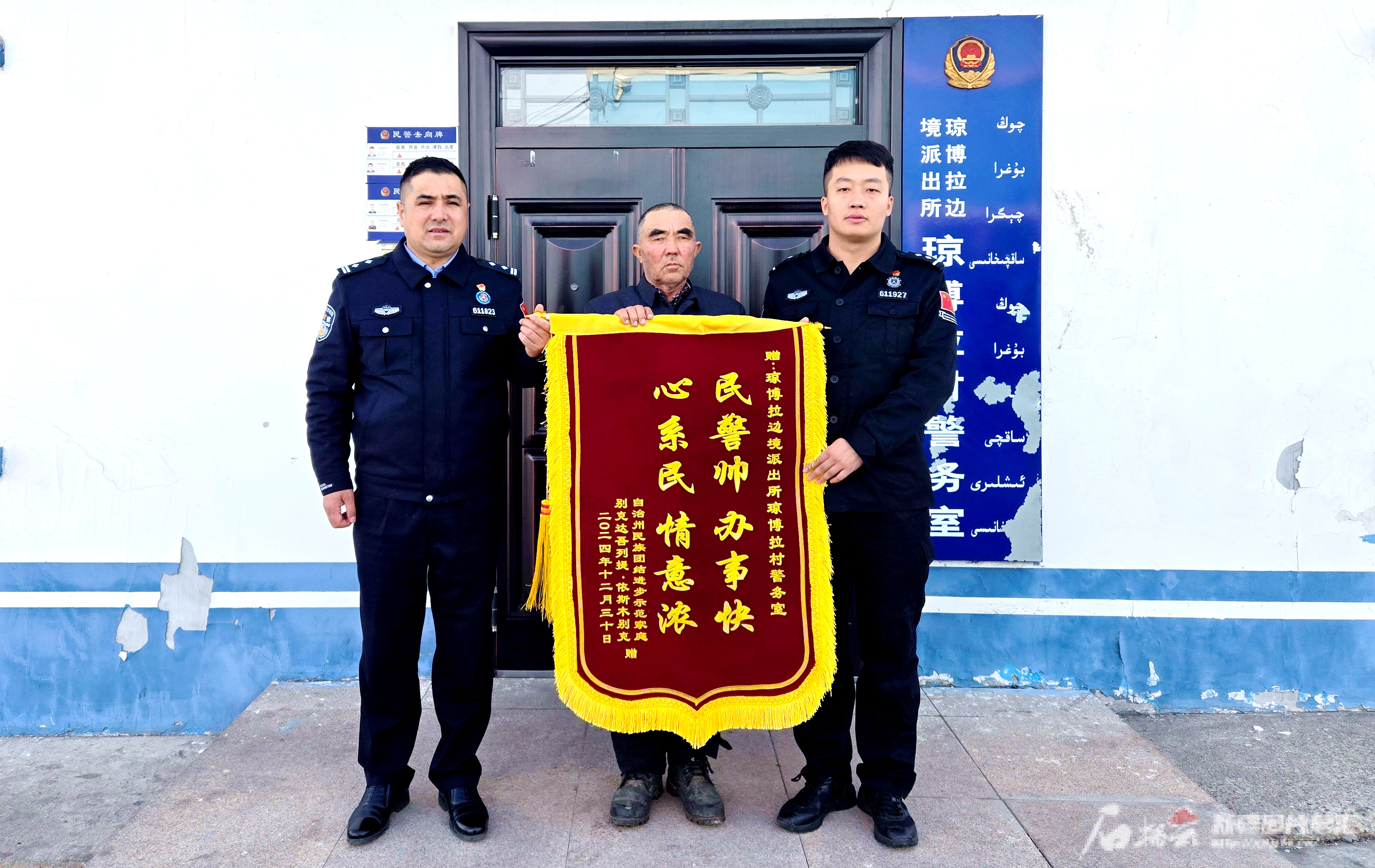 老牧民却一直记着这事,他要给民警送一面锦旗。他喊来儿子,商量着写什么词好。