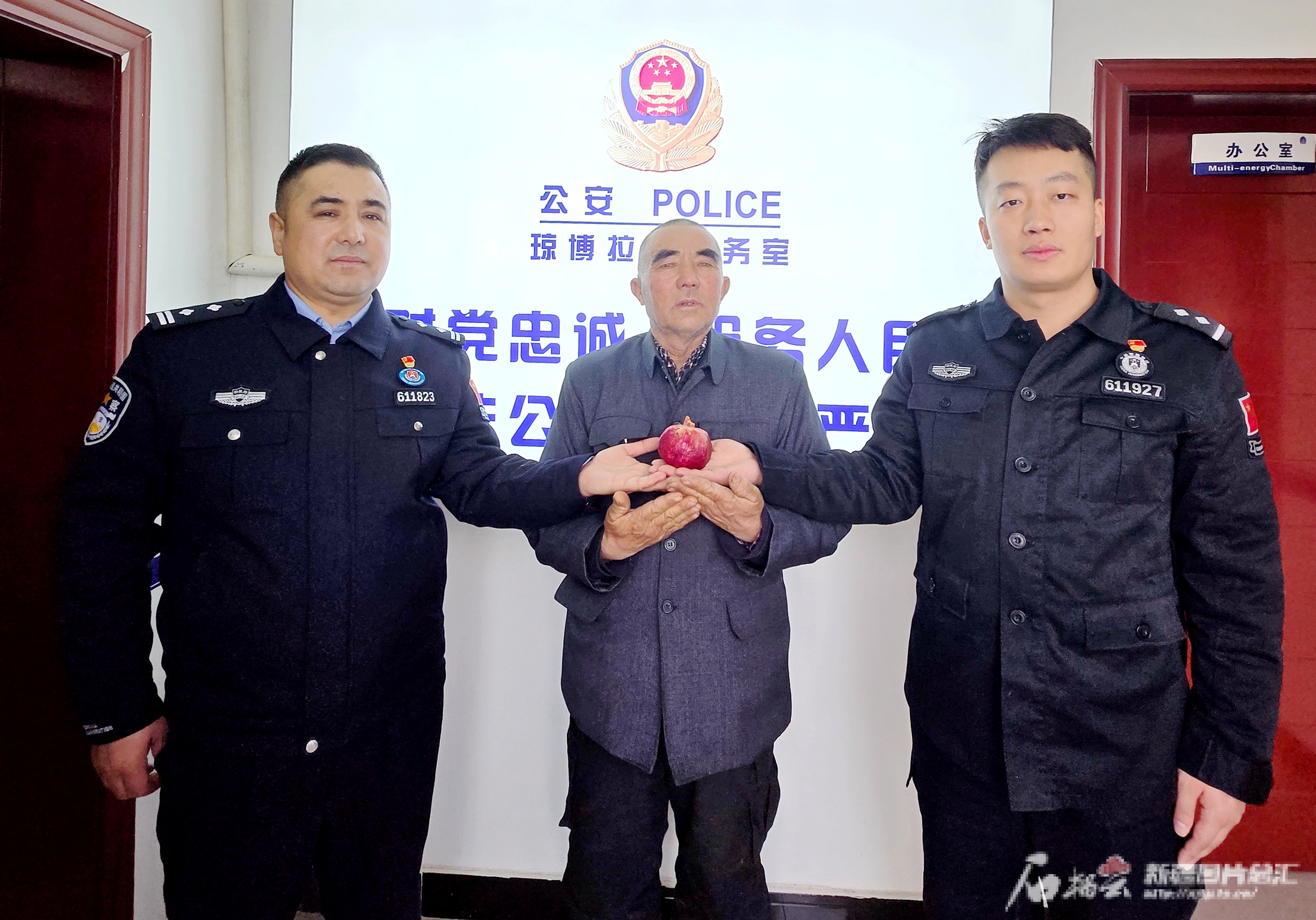 石榴云/新疆日报讯(记者 王琦铭报道)当“民警帅 办事快”锦旗送到面前时,民警很意外,更意外的是送锦旗的老牧民还赠了一个大红石榴。