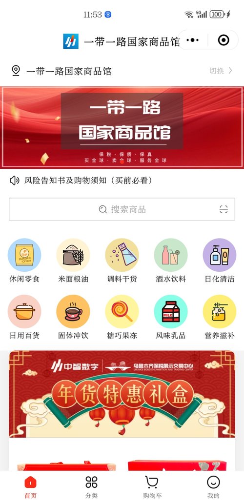 乌鲁木齐保税区展示交易中心网上商城“中智全球购”首页商品图。手机截屏