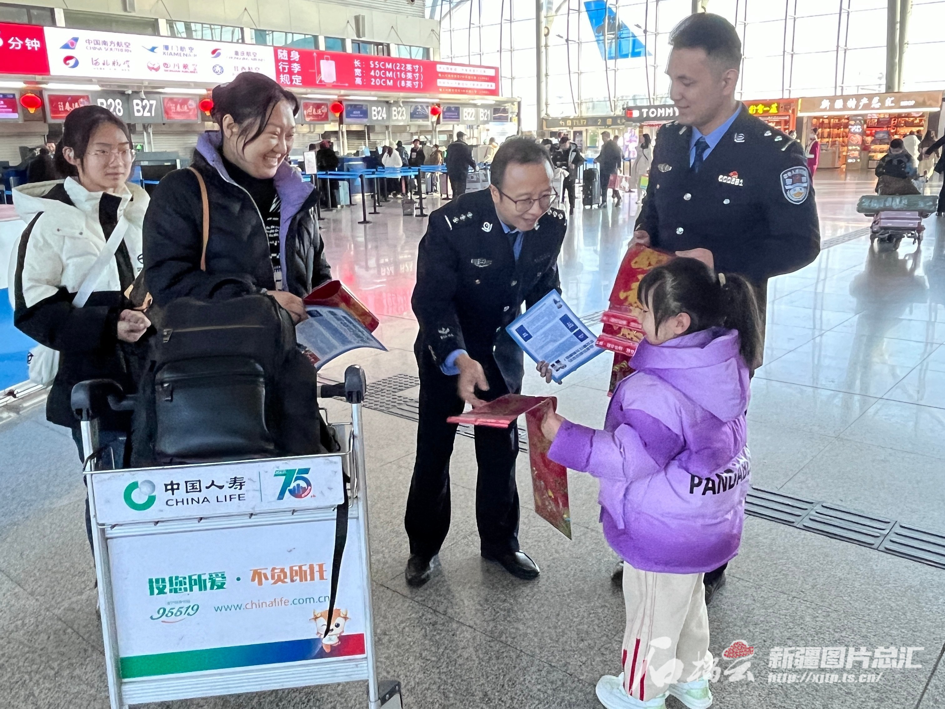 “为确保旅客安全出行,全区机场公安坚持显性用警,采取多种巡逻方式,重点围绕重点时段和区域开展巡逻防控。”自治区公安厅机场公安局政委梁勇介绍,将严格落实联勤联动机制,联合多部门开展非法营运联合整治,切实维护机场良好治安和出行环境,用实际行动为旅客的归途保驾护航,让每一位旅客在每一次真情服务中感受到来自新疆机场公安的温暖与关怀。