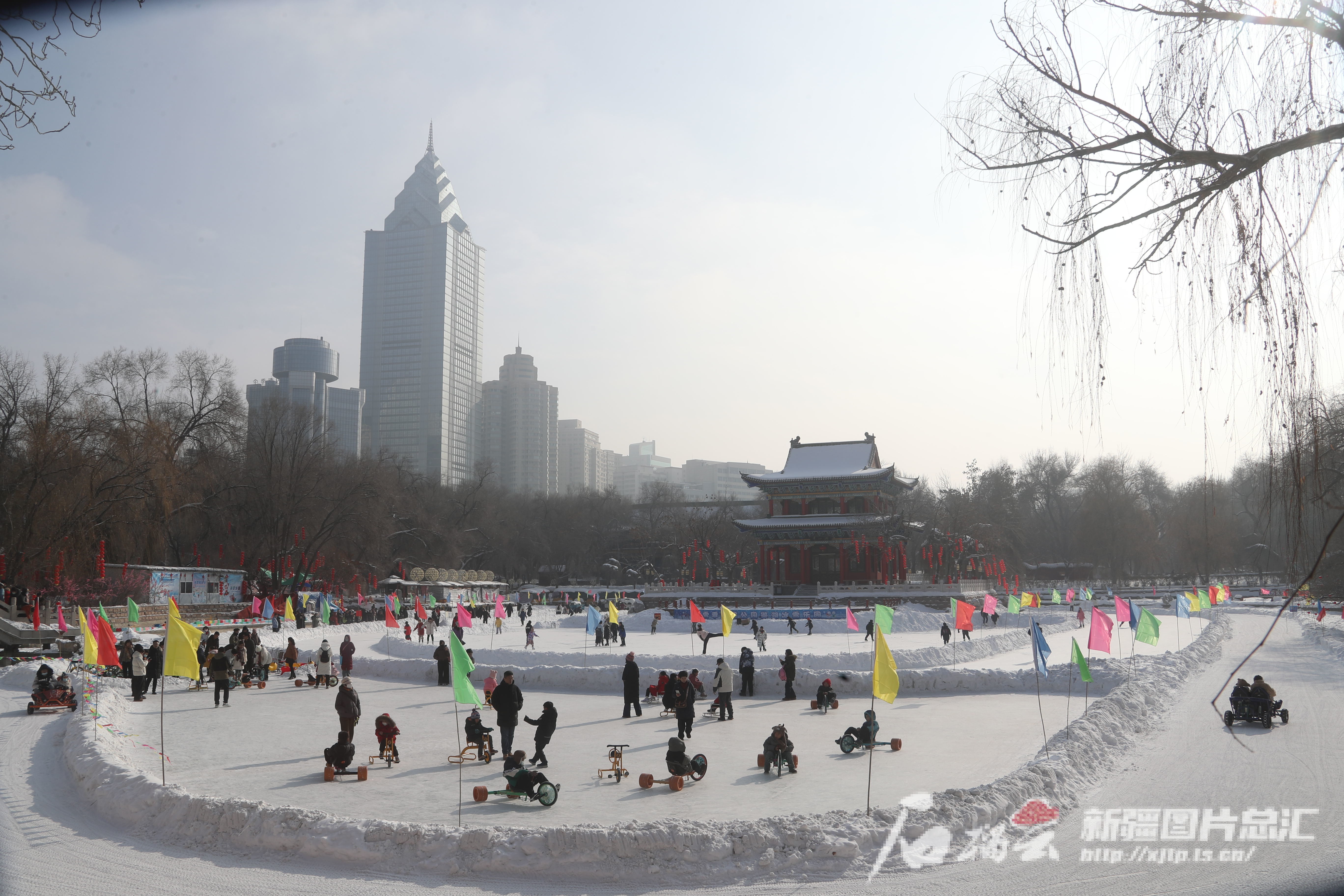 天山网-新疆日报讯(记者李雄心摄影报道)春节期间,乌鲁木齐市各大公园以迎新春为主题的游园会吸引了众多市民和游客前来游玩。2月2日,记者走进人民公园、红山公园、南湖市民广场,在各式各样的彩旗、彩灯的点缀下,游玩场地显得热闹喜庆,冰雪场上充满了欢声笑语,“活”力全开,各类游戏瞬间将春节的年味拉满。