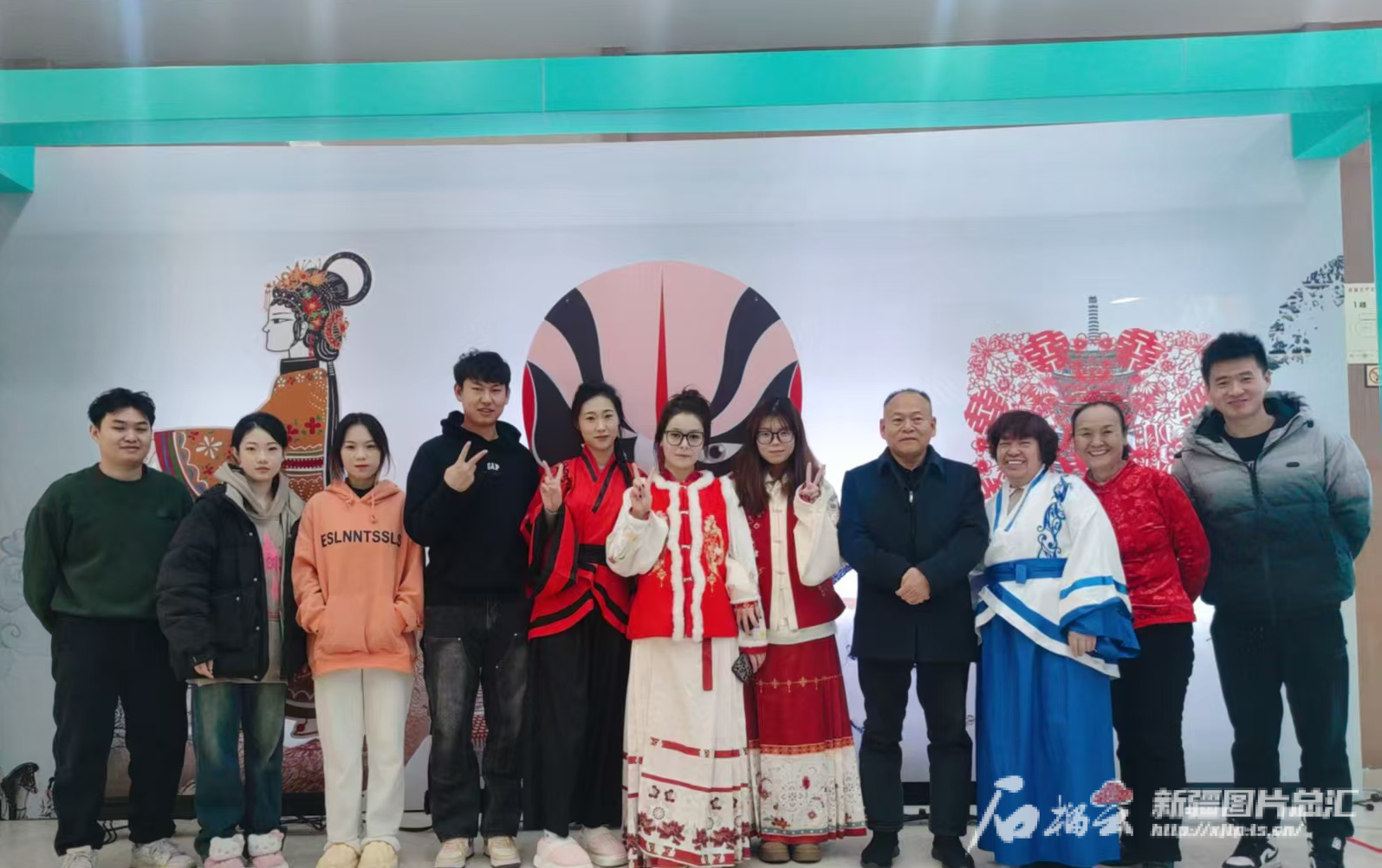 演出后郭同心(右四)和学生们合影。本人供图