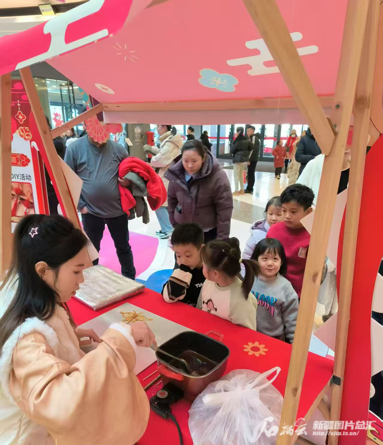 郭同心的学生在商场里做糖画。 本人供图