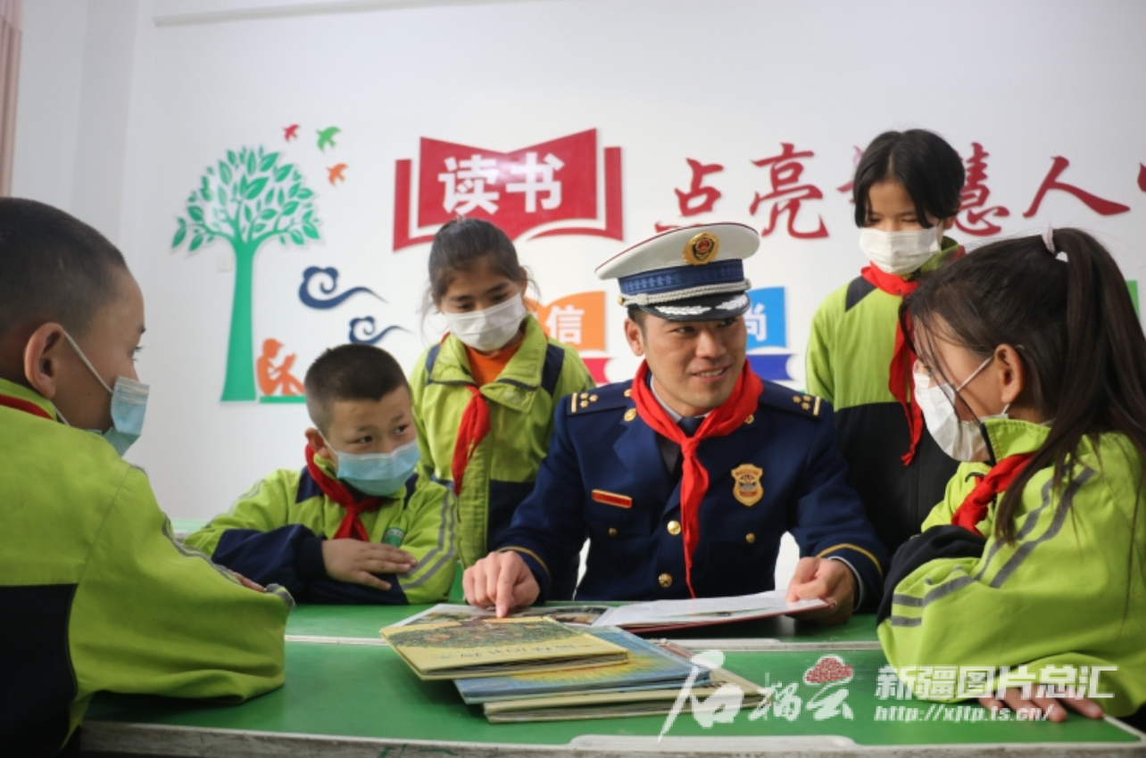 李运飞(中)为孩子们普及消防安全知识。图片由本人提供