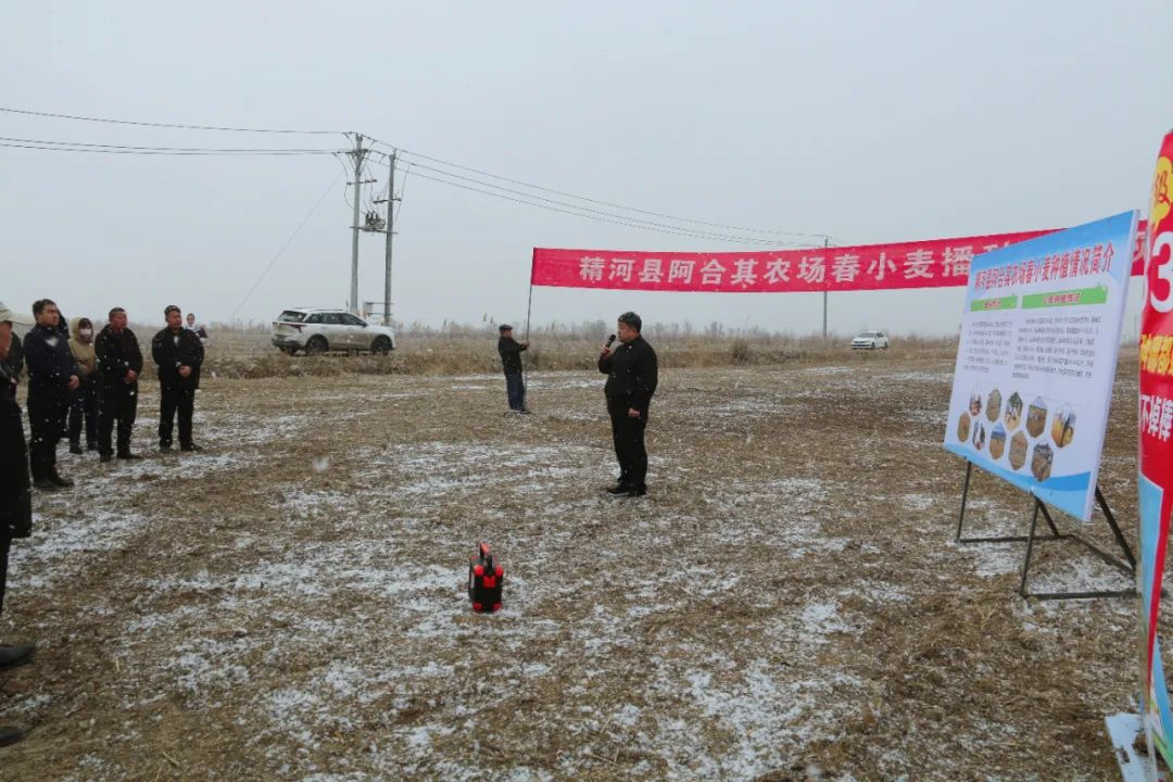 3月14日,精河县阿合其农场召开春小麦现场观摩会,动员广大农户迅速行动、抢抓农时,加快春耕生产进度,确保今年小麦丰产丰收。现场,农业技术人员详细讲解了小麦春播的关键技术要点,包括品种选择、播种深度、施肥量、病虫害防治等内容,同时,还讲解了小麦套种玉米的先进技术以及春小麦种植的政策补贴事宜,及粮食安全相关事宜。