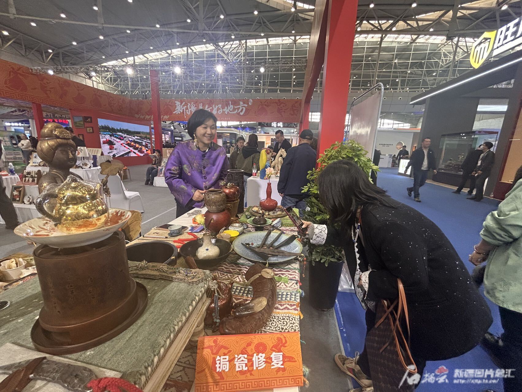 “没有金刚钻,别揽瓷器活,说的就是锔瓷这门古老的手艺。 ”锔瓷修复项目非遗代表性传承人颜鹏力,指着展台上的作品,给大家介绍着“金银铜铁石木角”几大类锔瓷修复的作品。“很期待和景区景点的合作,通过研学体验,让更多人了解到锔瓷修复这项工艺。”