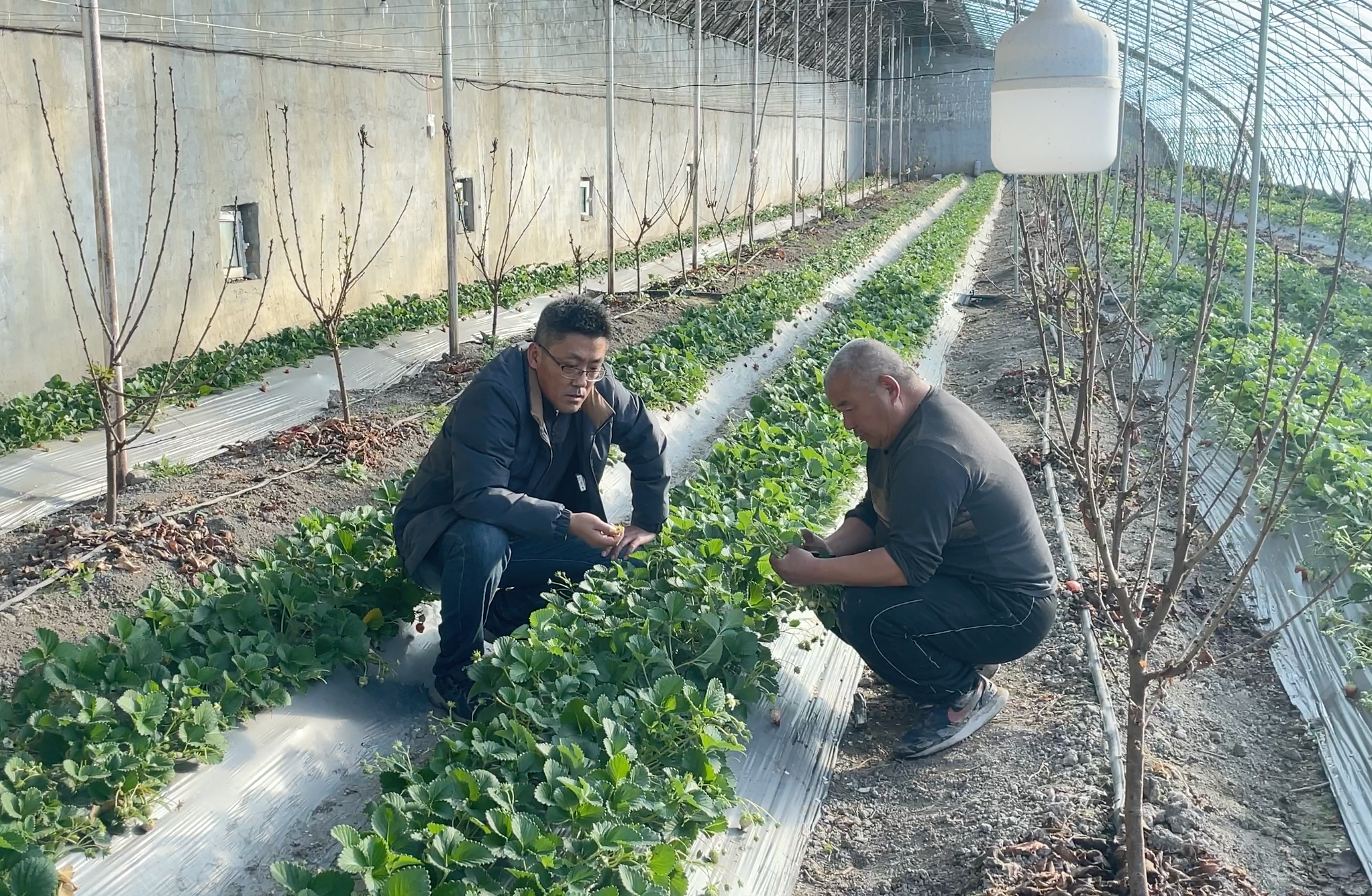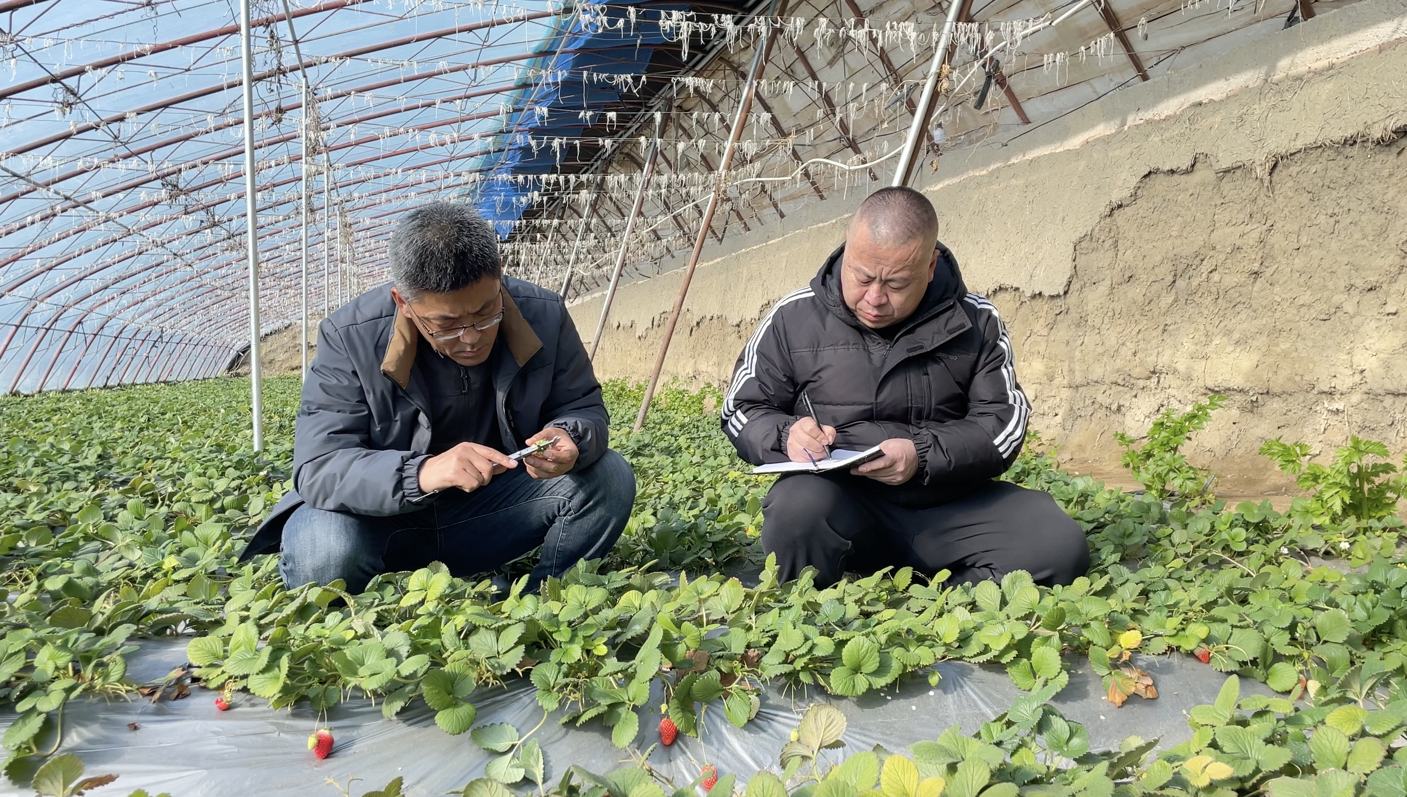 王志刚指导当地种植户管理草莓。
