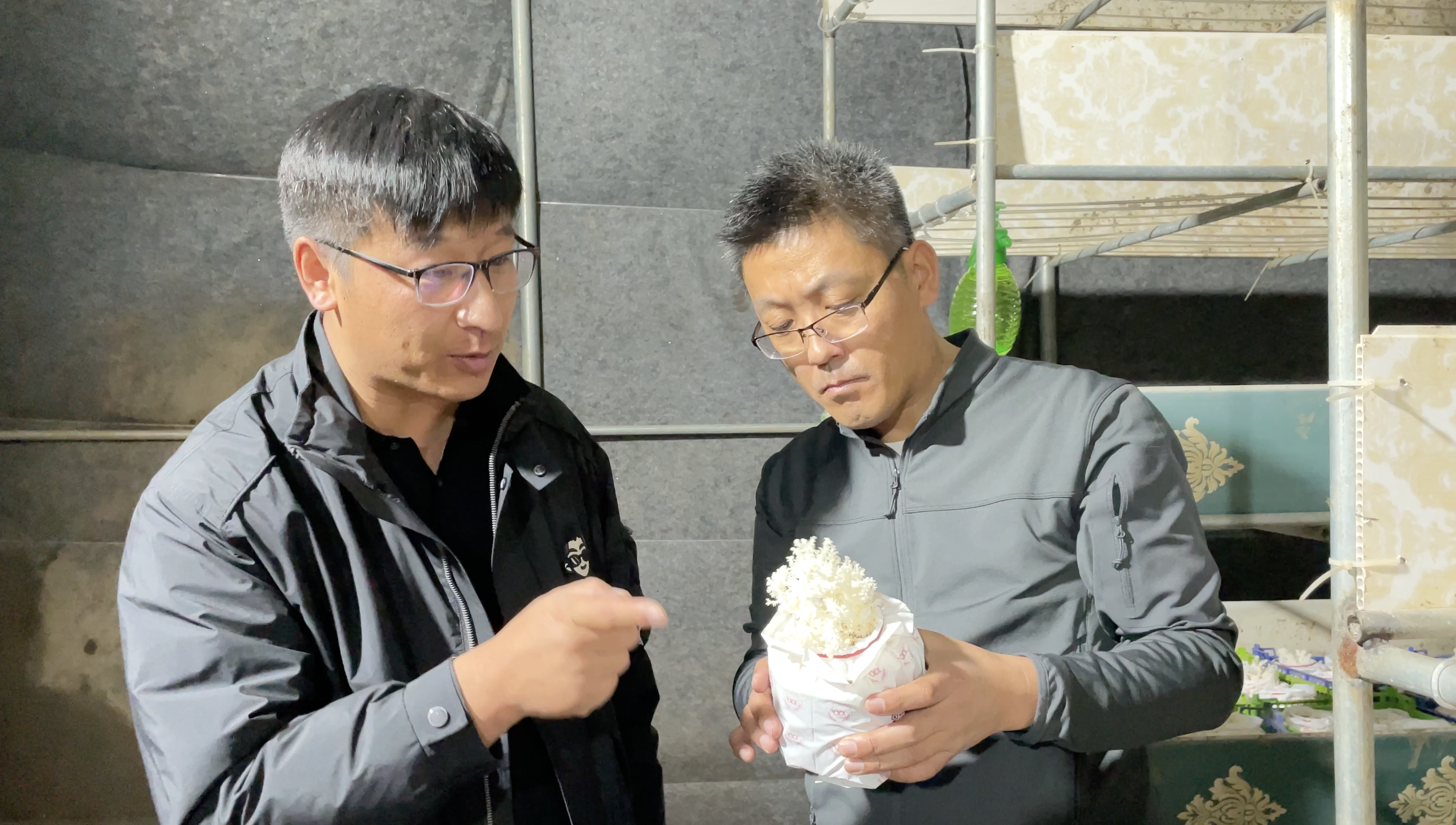 王志刚给公司负责人讲解珊瑚猴头菇种植技术。